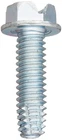 Thread cutting screw with type F point has machine screw threads that taper down to a blunt edge and is suitable for heavy gauge sheet metal, aluminum, cast iron, brass, and plastic Steel is often used in applications where strength is the primary consideration Zinc plating resists corrosion and has a reflective appearance Hex washer head has a flange for additional grip with the mating surface Slotted drive has a linear slot for use with a flat-blade driver The steel thread cutting screw has a zinc plating, a Type F point style, and a hex washer head with a slotted drive. The type F point is suitable for heavy gauge sheet metal, aluminum, cast iron, brass, and plastic. The screw has machine screw threads that taper down to a blunt point with multiple cutting edges and chip cavities. Steel is often used in applications where strength is the primary consideration. The zinc plating offers corrosion resistance and has a reflective appearance. The hex washer head has six flat sides that a wrench can grip to turn from the side, enabling use when there is no space above the head for a screwdriver. The flange acts like a washer to increase the fastener's bearing surface and distribute the clamping force over a larger area, providing grip and reducing damage to mating surfaces. The slotted drive has a linear slot for use with a flat-blade driver. Thread cutting and thread rolling screws, two types of self-tapping screws, are threaded fasteners that create a mating thread in the wall of a hole. The two screws differ from each other in the way that they create the threads. Thread cutting screws cut the wall of the hole to create the thread, creating material chips that need to be cleared away from the hole to prevent clogging. Thread rolling screws, also called thread forming screws, do not remove material but instead press against the wall of the hole to displace the material and form the threads.