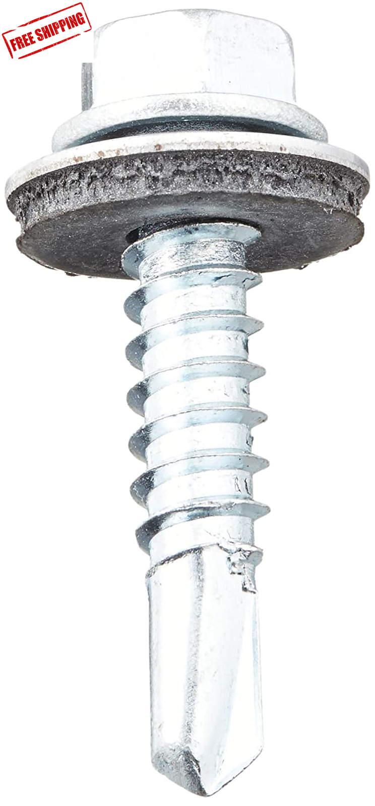 Steel is often used in applications where strength is the primary consideration Zinc plating resists corrosion and has a reflective appearance Sealing hex washer head has a flange with an EPDM rubber washer bonded to the underside to resist leakage, loosening, and damage to the mating surface Hex drive tightens from the side with a wrench, enabling use when there is no space above for a driver The zinc-plated steel self-drilling screw has a sealing hex washer head with EPDM washer and a hex drive. Steel is often used in applications where strength is the primary consideration. The zinc plating offers corrosion resistance and has a reflective appearance. The sealing hex washer head has six flat sides that a wrench can grip to turn from the side, enabling use when there is no space above the head for a screwdriver. The flange has an EPDM rubber washer bonded to the underside to resist leakage, loosening, and damage to the mating surface. Self-drilling screws, a type of self-tapping screw, are threaded fasteners that drill their own hole and thread it as they are installed. Usually only recommended for use with metal, self-drilling screws are available with wings that enable use when fastening wood to metal. The drill point length should be long enough to penetrate both materials being fastened before the threading portion reaches the material.