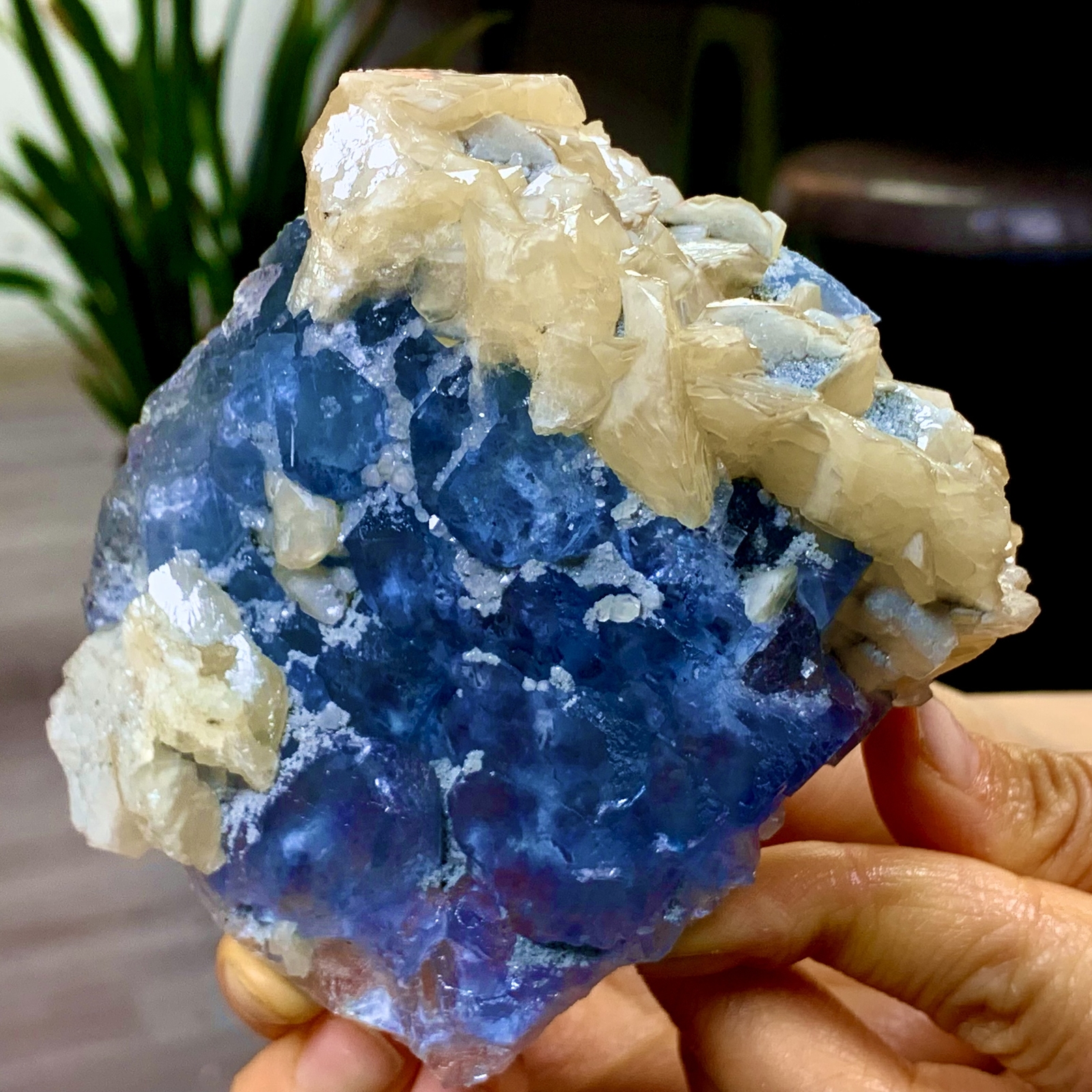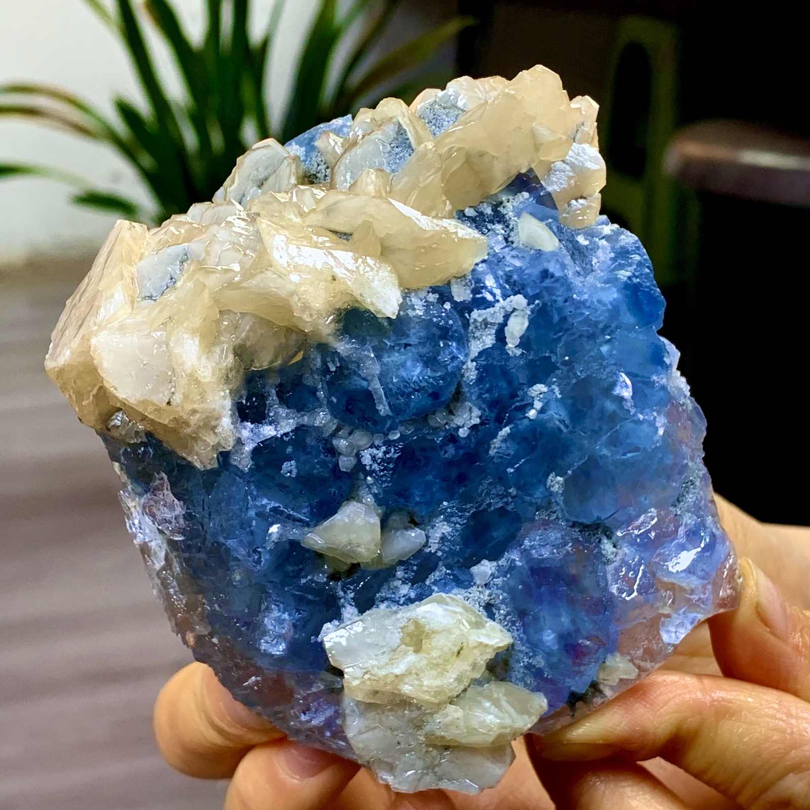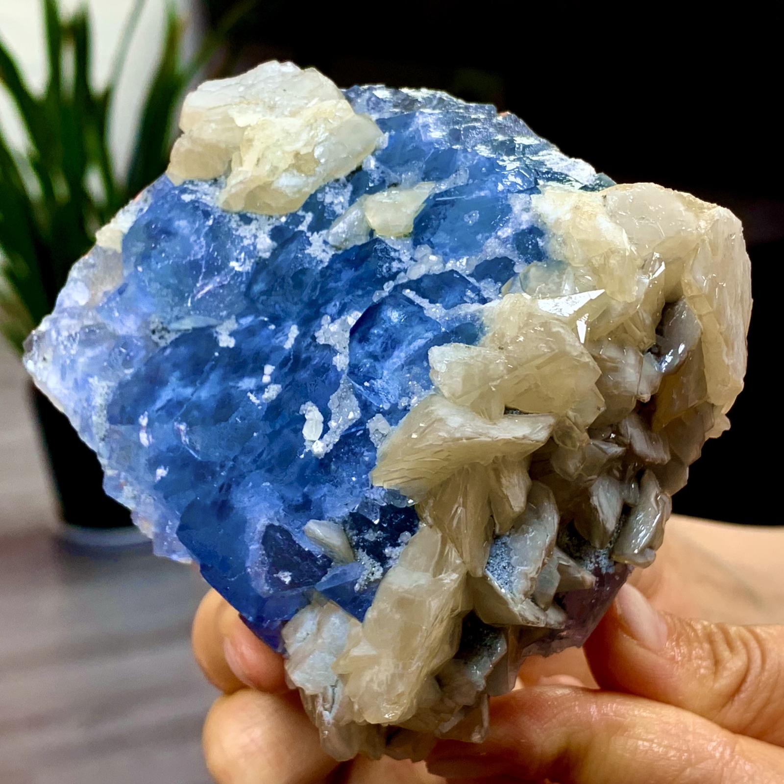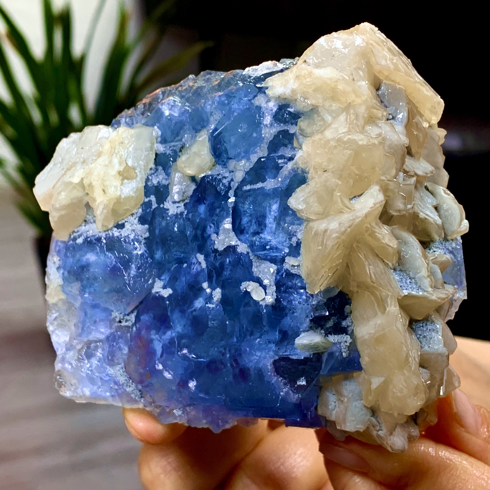 Absolutely stunning! The vibrant blue fluorite and golden calcite create a breathtaking contrast—so much natural beauty in one piece. The colors pop under sunlight just like the photos, and the size is perfect for display. Shipping was fast, and it arrived well-packaged. A must-have for any crystal collector—highly recommend!