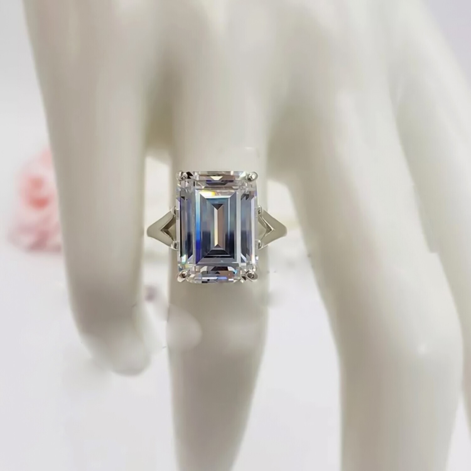 $ 218.716.50 Ct Emerald Cut White Diamond 925 Silver Promise Ring For Wife