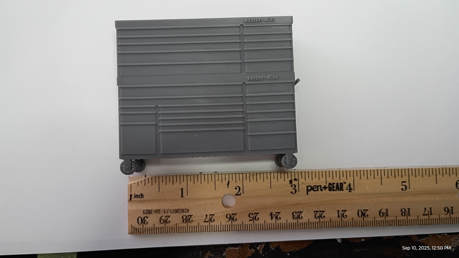 Disclaimer: Please note that our 3D printed resin parts are intended for hobbyists and experienced modelers. These parts are not beginner-friendly and may require significant post-processing, including but not limited to sanding, priming, and fitting adjustments. Minor imperfections, support marks, or surface texture are common with resin printing and are expected to be addressed during finishing. By purchasing, you acknowledge that some cleanup and modeling skill will be necessary to achieve optimal results. 1/24 1/25 scale 3D resin Printed Snap On tool box for Diorama will need sanded and painted, may have some minor lines/shift lines from printing that would need sanded out Great tool chest for your Diorama items may have imperfections and need work to get a little more perfect to be aware that you might need to do some prep work... there are support marks on bottom and back of the tool box and might need sanding.