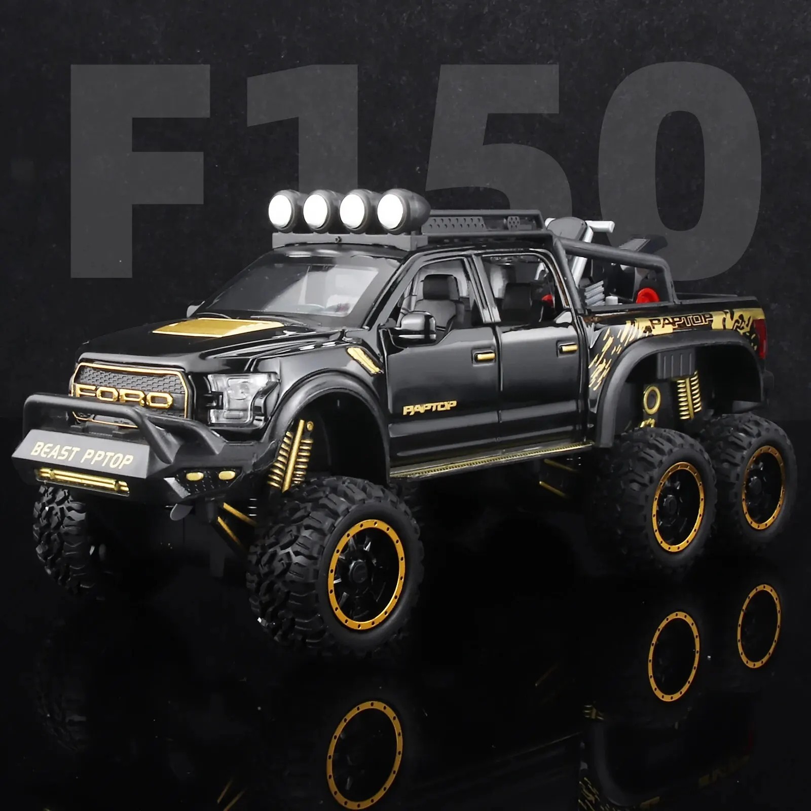 1:24 Pickup Trucks for Boys – F150 Raptor Diecast Metal Model Car with Sound & Light Rev up the excitement with this highly detailed 1:24 scale Ford F150 Raptor diecast model truck – the perfect gift for boys, collectors, and truck lovers! Built with premium materials and true-to-life features, this rugged pickup replica delivers both fun and realism in one powerful package. 【Key Features】 [Realistic F150 Raptor Design] Modeled after the iconic Ford F150 Raptor with aggressive grille, off-road tires, and accurate body detailing. [Durable Diecast Metal Body] Made from sturdy diecast metal with plastic parts, ensuring long-lasting durability for display or play. [Interactive Light & Sound Effects] Features functional headlights and engine sounds – activated by a simple press, enhancing the lifelike experience. [Opening Doors, Hood & Tailgate] Includes detailed interior with openable parts for immersive play and inspection. [Pull-Back Action] Friction-powered wheels let kids rev up and go – just pull back and release for racing fun. [Perfect Gift for Boys & Collectors] Ideal for birthdays, holidays, or collectors of licensed Ford models and scale diecast cars. 【Specifications】 ✔ Scale: 1:24 ✔ Model: Ford F150 Raptor ✔ Material: Diecast metal body + plastic parts ✔ Dimensions: Approx. 8 inches (L) ✔ Features: Sound, Light, Pull-back motor, Openable doors/hood/tailgate