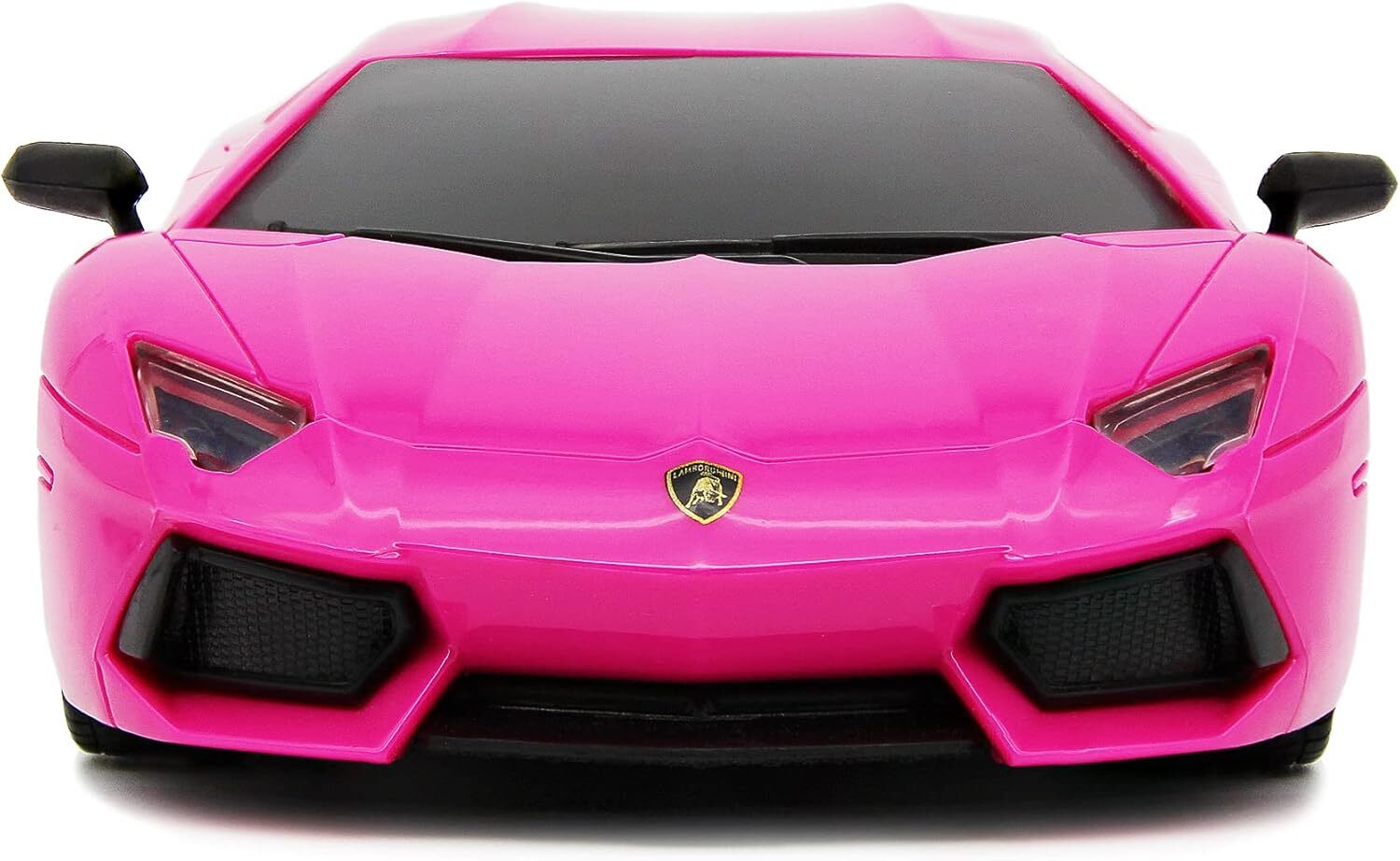 Lamborghini Remote Control RC Car 1:24 Scale Working Lights 2.4Ghz. Great Kids Play Toy (Pink) Item Description 2.4Ghz frequency means that more than 10 can be raced together without interference. This is not possible when buying cars on 27Mhz or 40Mhz which is the normal standard. The perfect individual gift or gift for two, three, four or more than ten! 1:24 scale Lamborghini LP700-4 remote control car (around 20CM+) is ready to use straight out of the box. Just add 5 x AA batteries- 2 for the controller and 3 for the car itself (not included). This is a comprehensive replica model true to the actual vehicle with a full function range including working LED lights, forward, reverse, stop, left and right. Remember the better the batteries the faster the car will go. The Lamborghini LP700-4 remote control car has a working spring suspension system, adjustable front wheel alignment and xenon style head lights. Perfect for night time RC car racing! Race with any other remote control car The controller on this licensed RC car is straightforward to use and can be operated up to a huge 20 Meters away. Show off your driving skills with the Lamborghini LP700-4 toy car indoors or outdoors on smooth surfaces. They can impress their friends with superb cornering ans speeds The model has everything: outstanding detailing, rims, rubber tyres and a great paint finish. This great toy will make the perfect gift for kids ages 6+. Girls and Boys alike will get hours of fun from these RC Cars. Payment safe payment via eBay Shipping Fast and Free Shipping Return 30 Days Return