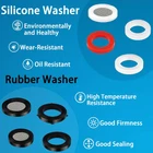 {Material}: /Black self locking tabs rubber washer / red heavy duty garden hose gasket / white silicone shower hose washers / quick connect hose fittings,3 kinds of materials rubber washer into a box.40 mesh stainless steel filter.to filter sand and gravel to reduce the possibility of nozzle clogging {WIDE APPLICATIONS}: The plumbing washer combo kit is suitable for all kinds of pipes,shower hose,garden hose splitter,washing machines inside water supply line strainer filter Rv faucet plumbing fittings {Dimensions}: Silicone rubber filter gasket combination Kit,OD: 1inch(25mm) and 3/4inch(19mm) for mounting all standard 3/4", 1/2" pipe fittings or 5/8" washer fittings {Easy Replacement}: The plumbing gasket has good sealing performance, easy to replace and install, prevent water leakage and fit perfectly {SERVICE}: Twcc puts the appropriate spacers in a clear storage box with size labels to prevent loss and confusion. thanks for your support Product Description 129 Pieces Washers Assortment Kit ZDBB provides you with a box of gasket sets containing multiple varieties and materials. The set is very suitable for household use and maintenance treatment, Suitable for faucets, shower heads, garden hoses, washing machines, etc. widely used Bathroom Hose Shower accessories, connection gasket application Garden Faucet Connection Garden hose connection port, sprinkler connection port, hose joint diverter, outlet diverter Washing Machine Pipes Washing machine faucet connector, washing machine stainless steel connecting pipe interface Outdoor Faucet faucet quick connector Material difference: Silicone---non-toxic, odorless, healthy, good elasticity, strong sealing. Nitrile rubber---high temperature resistance, corrosion resistance, abrasion resistance, and good physical properties. A good helper for the repairman Material Self-locking gasket: can be fixed in place to prevent the gasket from falling off the hose connector, ensuring a tight connection and no leakage Stainless steel filter gasket: can limit the flow, filter sand and stone, reduce the possibility of nozzle clogging, and effectively reduce water waste.