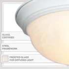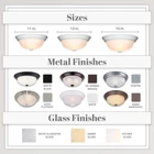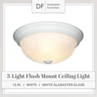 FLUSH MOUNT LIGHT COVER: This sleekly modern overhead light fixture features a durable steel construction and beautiful white alabaster glass for a professional and sophisticated aesthetic suitable for a wide range of home decors; ideal for indoor lighting fixtures VERSATILE USE: Perfect for a wide range of home settings, this round light fixture is ideal for adding illumination and a touch of class to your kitchen, bathroom, bedroom, dining room, hallway, entry way, stairwell, laundry room, closet, and much more EASY INSTALLATION: This dome light fixture includes mounting hardware to allow for quick and easy installation, and the close to ceiling light fixture also allows for easy bulb replacement DURABLE CONSTRUCTION: Our light covers are constucted with a strong and sturdy steel construction to provide long-lasting and reliable lighting, and feature white alabaster glass to add a touch of elegance and sophistication to any room SPECS: Our ceiling light fixtures measure 15.25 W x 15.25 D x 5.5 H in inches, and are suitable for use with three medium 60W LED or incandescent bulbs (Bulbs not included); flush mount ceiling lights are UL/cUL and damp location rated and backed by a 1 year warranty Add bright interior illumination and a touch of elegance to your home with our DESIGNERS FOUNTAIN ceiling mounted light fixture. Constructed with durable long-lasting steel and sleek white alabaster glass, this ceiling mounted light fixture cover is great for adding a touch of class and sophistication to your home decor, and is perfect for use in bathrooms, bedrooms, stairwells, hall ways, utility rooms, or even the entrance to your home. This interior light fixture includes the necessary mounting hardware to allow for easy installation onto ceilings, and the flushed ceiling light also allows for easy bulb replacement. Our simple light fixture measures 15.25 W x 15.25 D x 5.5 H in inches, and is suitable for use with three 60W LED or incandescent bulbs (Bulbs not included). This round ceiling light is UL/cUL and damp location rated, and backed by a 1 year warranty. Enhance your home's lighting with this elegant and contemporary light fixture.