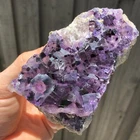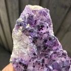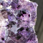 Type: Fluorite Locality: Yindu Ag-Pb-Zn deposit, Inner Mongolia, China Size : 12.5cm x 5.9cm x 6.8cm (largest crystal 1.9cm) Weight: 710g A lovely example from this well-known fluorite find at the Yindu Mine in Inner Mongolia, China. The crystals are a beautiful lavender purple with distinctive dark purple stripes. These have formed as a result of multiple generations of growth. A first generation would have grown, with dark purple colour preferentially concentrated along four faces of each fluorite crystal. A second generation of clear lavendar cubes has then covered these, resulting in the distinctive aesthetic this pocket is so well known for. The crystals have wonderful lustre and really glow with sufficient backlight. ID: 101
