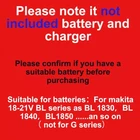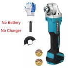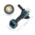 This product does not contain battery and charger ! This product does not contain battery and charger ! This product does not contain battery and charger ! Note: After receiving the device, If you encounter any problems during use, please feel free to contact us. thanks! Describe: Heavy-duty, multi-gear setup. Strong electricity, multi-function, super power. Tungsten steel shaft, high hardness, high wear resistance. Can meet the various needs of woodworking polishing Makita battery For example: Makita (BL1840), Makita (BL1840B), Makita (BL1850B), Makita (BL1850), Makita (BL1860B), etc. Tip: The angle grinder needs 30A+ current for the battery to work normally Feature: - The metal gear box is durable and has a longer service life. - 3-position side rubber assistive handle for left or right handed users. - Quick installation and replacement of accessories through the spindle lock, making your work safer and faster. - Rubber molded shock-resistant handle is easy to hold for long hours of use. - Tool-less protection allows for quick and easy adjustments. - Spindle lock for quick and easy wheel changes. - Slim body, comfortable grip. Specification: Material: rubber+ABS+steel color: blue Power Type: Rechargeable Lithium Battery Technology Voltage: 18(V) Input power: 860 (watts) Output power: 860 (W) Grinding/cutting diameter: 125(mm) No-load speed: 20000 (rpm) Spindle diameter: M14 Chuck size: 45 (mm) Product packaging: 1*angle grinder(No Battery included) 1*handle 1*protective case 1*wrench 2*grinding wheel 1*A pair of gloves 1*manual