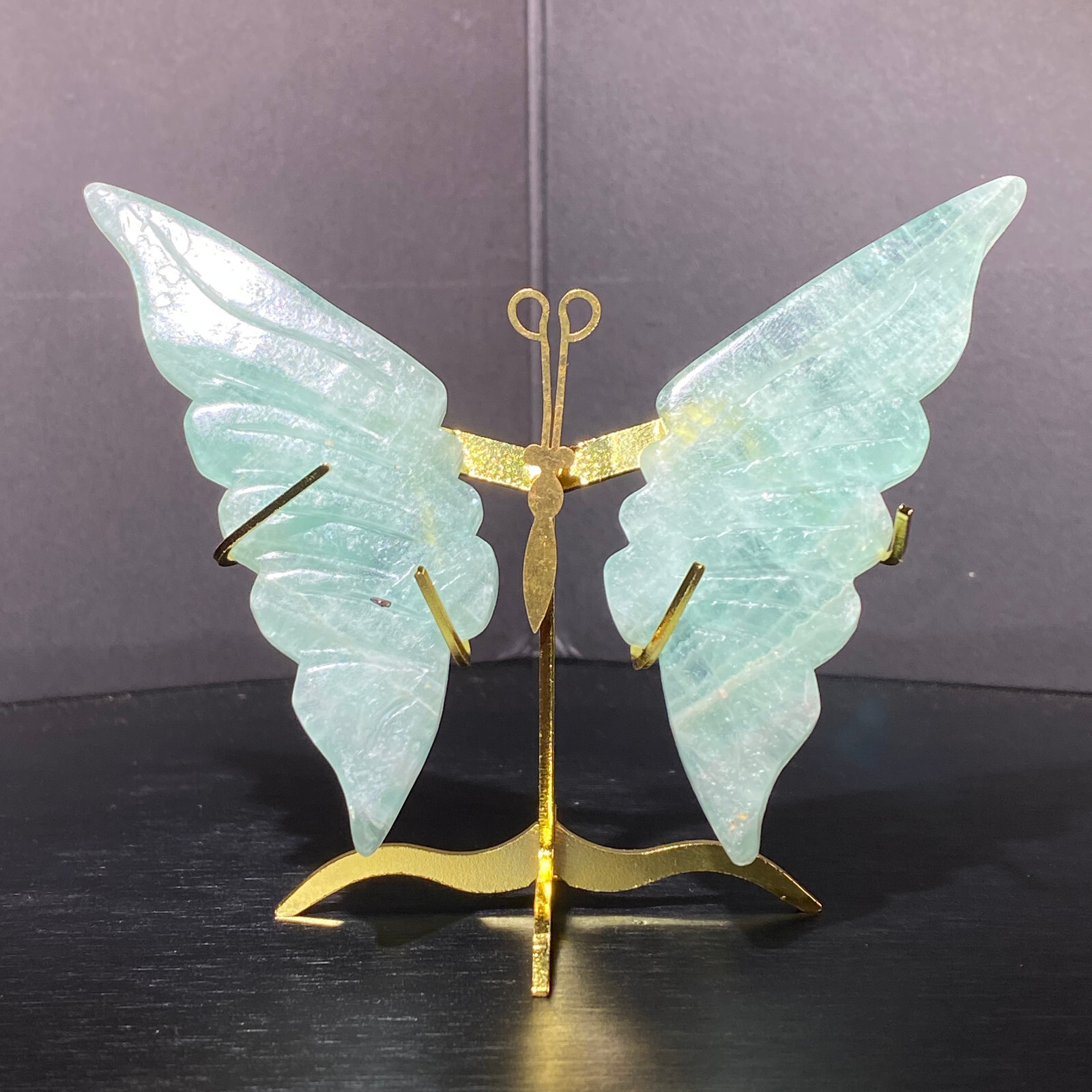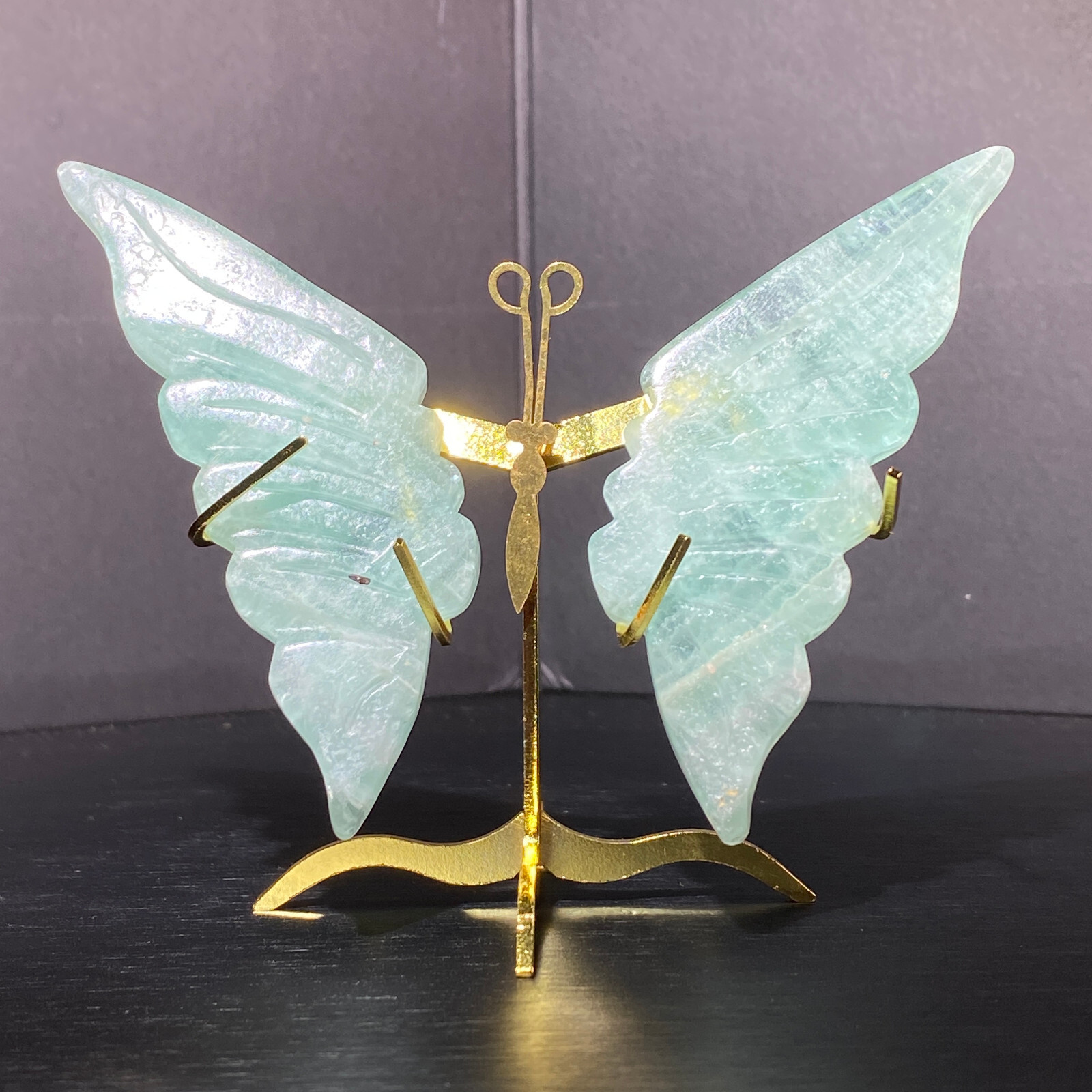 $ 0.6689G Natural Fluorite Butterfly Wings Healing Statue with Stand for Home Decor