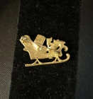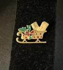(1277) Gold Tone Sleigh Enameled Holly Bow Christmas Gifts Brooch