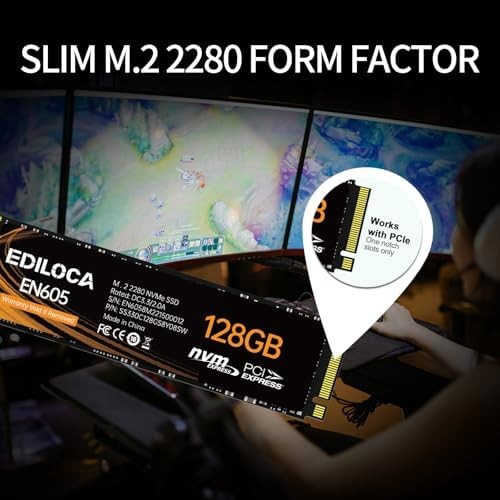 About this item 【Top Performance】With the accelerated performance through NVMe technology, EDILOCA EN605 M.2 SSD can provide you with shorter loading time and faster data transfer. EN605 NVMe SSD can reduce OS and game/software latency, you can get stable and smooth gaming / office experience. 【High-Speed Transfer】PCIe Gen3 x4 high-speed interface, sequential read or write speed up to 2050/600 MB/s. Compliant with NVMe 1.3 protocol standard, it has high performance, low latency and low power consumption features. 【Stable & Reliable】Built-in LDPC error correction decoding effectively ensures the correctness and reliability of data transmission and access. 【Widely Compatible】Lightweight design with M.2 2280 interface specification, it can be used by desktop or notebook computers that support M.2 PCIe interface. Perfectly compatible with Windows 10/8/7 and later.