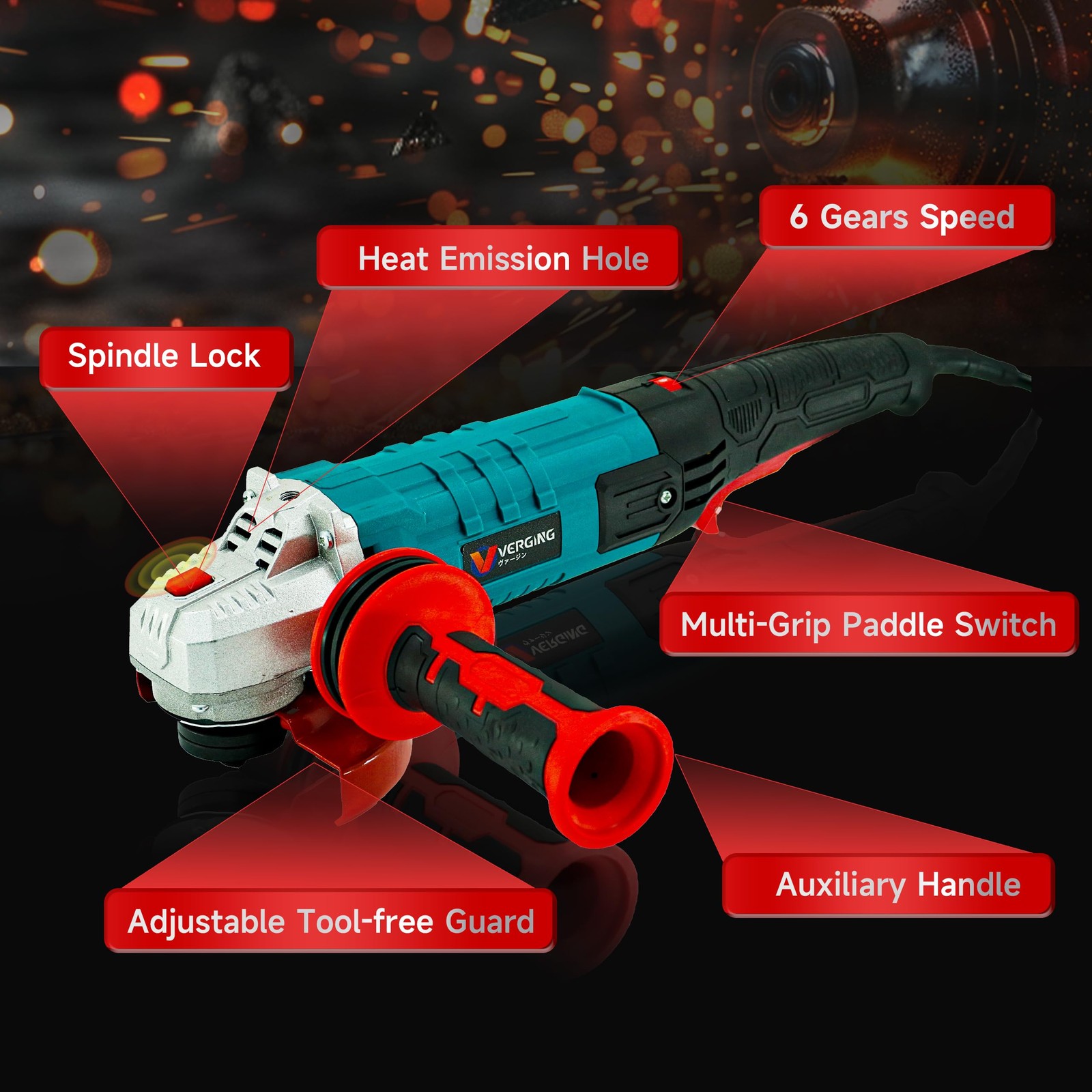 Corded Angle Grinder, Variable Speed Angle Grinder, Angle Grinder Tool 4-1/2 Inch (12 Amp, 1400W, 11000 RPM), Multifunctional Grinder Tool with Grinding and Buffer Polishing Capabilities, Non-Slip Handle, and Auxiliary Handle ✅ [Super Power]: This corded angle grinder is equipped with a 12 Amp motor and a maximum power output of 1400W, delivering a no-load speed of 11000 RPM. This powerful angle grinder tool ensures fast and efficient cutting and grinding capabilities. ✅ [Multifunctional Grinding and Polishing]: The angle grinder comes with both grinding and buffer polishing functions, making it versatile for various applications. Whether you need to grind, polish, or remove rust, this grinder tool is your perfect companion. ✅ [Safety & Convenience Design]: Featuring 2 tool-free wheel guards specifically designed for cutting and grinding, this angle grinder prioritizes user safety. The slide switch includes a lock-off/on feature for easy operation, and the raised spindle lock allows for quick and safe accessory changes. This makes it a reliable choice among corded grinders and cut off tool . ✅ [Compact & Lightweight]:Corded angle grinder with a narrow and lightweight body weighing just 5.5 pounds, this hand grinder power tool offers a comfortable grip, reducing user fatigue even during prolonged use. It's comparable to popular models like the craftsman angle grinder and the makita grinder. ✅ [Ergonomic Design]: The ergonomic 2-position side handle is made of non-slip rubber, providing added control and comfort for different angles and materials. The centrally located slide switch is user-friendly for both left and right-handed individuals. ✅ [Universal Size]: This 4-1/2 inch angle grinder has a 7/8” arbor and a spindle size range of 5/8-11 threaded, making it compatible with a wide range of accessories, similar to milwaukee grinder and angle grinder models. ✅ [Package Components]: Grinder tool included in the package are 4-1/2" Grinding Wheel*2,4-1/2" Cutting wheel*2,4-1/2" Flap Disc*2,Spanner Wrench*1,Wheel Guard*1,Carbon Brush*2,Instruction Manual*1,2-Position Side Handle*1. The extra carbon brushes ensure twice the motor life compared to others, positioning it as a high-quality 4 1/2 grinder.
