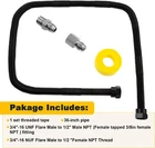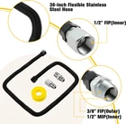 1/2"OD X 3/8"ID 36" Non-Whistle Flexible Gas Line Connector Kit for Garage Heaters,Gas Dryer, Fireplace, Fire Pit, Water Heater, Kitchen Gas Appliance, with 1/2"MIP X 1/2"FIP Connector 🔥【COMPATIBILITY】: Non-whistle flex lines with 1/2" male female converter fittings is perfect for NG or LP fire pit, fireplaces, gas water heater, gas stove, gas roasting machine, gas dryer connector Kit. 🔥【SPECIFICATION】: 1 Set Threaded Tape, 3/4"-16 UNF Flare Male to 1/2" Male NPT (Female Tapped 3/8'' Female NPT ) Fitting , 3/4"-16 NUF Flare Male to 1/2 " Female NPT Thread Adapter Fitting. 🔥【MATERIAL】: The gas line connector kit is made of stainless steel, with high temperature resistance and excellent flexibility, it ensures a longer service life. 🔥【COST-EFFECTIVE】: The uniquely-ridged hose prevents whistling harmonics during gas flow. Easy to install and use for both indoors and outdoors.It is a very decent product for money. 🔥【SERVICES】: We are committed to offering superior quality products and efficient customer service. For any product questions, please feel free to contact us, we will back to you ASAP. Product Description The material of the gas fireplace pipe kit is stainless steel construction for durability and longevity, painted in black for more durable. 3/4"-16 UNF Male Flare x 1/2" Female NPT fitting and a 3/4"-16 UNF Male Flare x 1/2" Male NPT fitting for your convenience. Compatible with most household appliances, such as natural gas, gas brazier, gas fireplace, gas pipeline, etc. Features - Naturally corrosion resistant for added flexibility and quality flared end fittings to prevent fluid leakage. - The black coated cover provides additional protection against corrosion and prevents accidental exposure to common household chemicals. - Non-whistle corrugated flexible gas line connectors are compatible with NG or LP fire pits, fireplaces, gas water heaters, gas ranges, gas bakers, and gas dryer connector kits. Item model number grill-connectors Part Number grill-connectors Batteries Required? No Power Source grill-connectors Color Black Product Dimensions 36"L x 0.5"W Country of Origin China Item Weight 14 ounces Manufacturer ETERMETA Brand ETERMETA Size 36 Inch Shipping Fast shipping is very important for us. Our standard US shipping service is FREE. Your order will be shipped within 2-3 business days upon full payment received. Your order will be delivered within 2-3 business days after the handling time. We only ship to the confirmed PayPal address. We reserve the right to cancel any order for any reason at any time. We are not responsible for undeliverable addresses. Returns and payment We offer a 30 days return policy from checkout winning date. We allow only PayPal as payment method FeedBack Your feedback very important to us, after you get your package and you are satisfied with our service please leave us positive feedback If you have any problem with your order / any questions please before leave any type of feedback For any questions, using eBay contact system Please visit our eBay store to check out other items for sale! Thank you for shopping at our store.