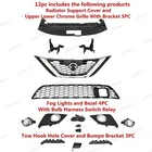 Fit for : 1 Set (12 PCS) Includes:(See more pictures for details) 1 Pc front radiator support cover 2 Pcs front upper grille retainer brackets 1 Pc front upper black grille with chrome trim 1 Pc front lower black grille mesh with adaptive cruise 2 Pcs fog lights with bulb,switch,relay and harness 2 Pcs fog light bezels(black+chrome) 2 Pcs front bumper brackets 1 Pc front Tow hook hole cover Item OE number : 62322-3YU0A; 62310-3YU0D;62254-4FY0A;62257-4AF0A;62256-4AF0A;26155-9B91D;26150-9B91D ;62225-3YU1A;62224-3YU1A;622A0-3YU0H Installation : Perfect fit direct replacement, no modifications required. Installation manual not provided; we recommend professional installation. Item's-Features : Superior quality kit 100% brand new Made from high-quality materials Excellent replacement part, no modifications needed Other parts fit for