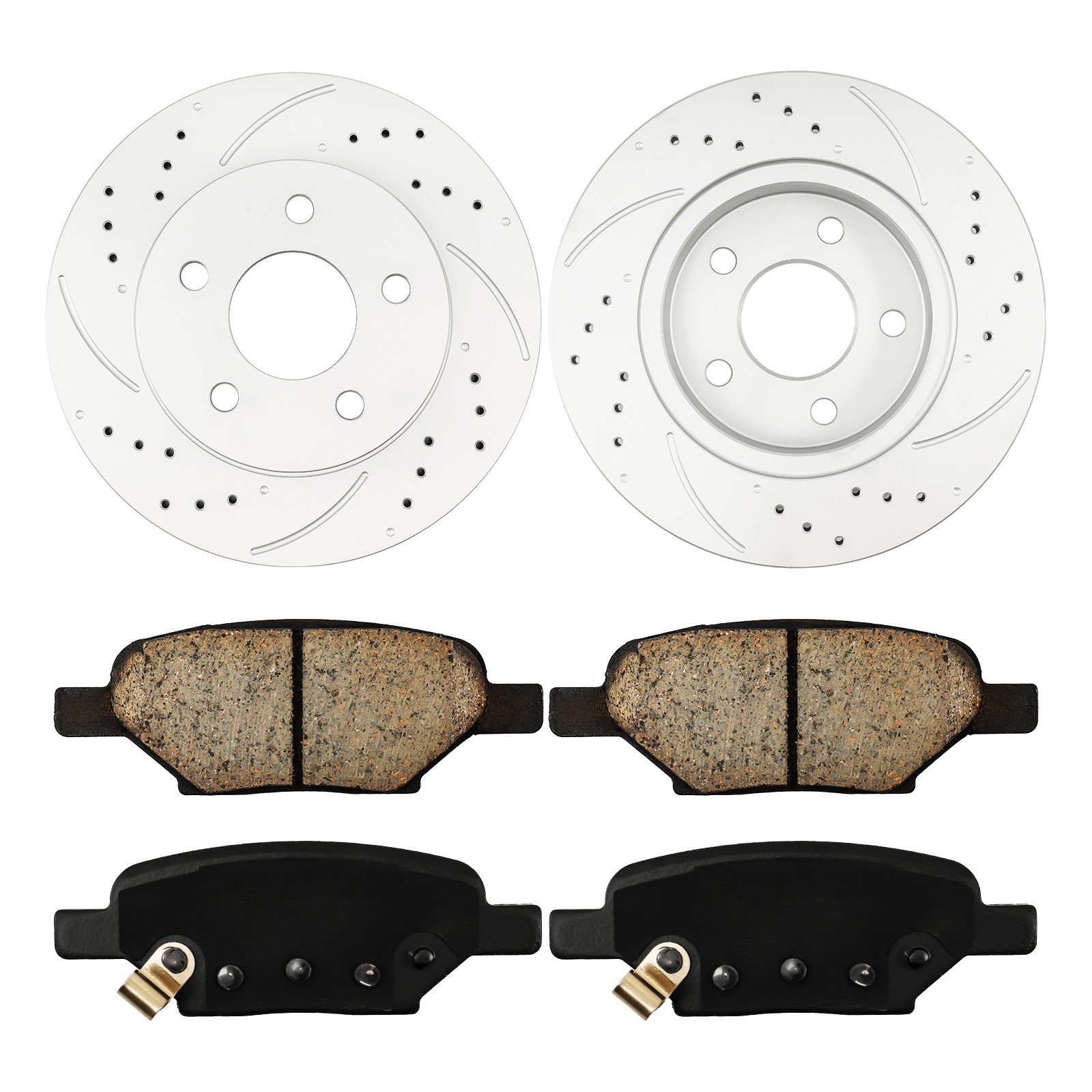 Features: Items Included: 2x Front brake rotors - 55093,4x Front brake pads - D1160,2x Rear brake rotors - 55094,4x Rear brake pads - D1033 Overall Height: front 43.7mm,rear 45mm Discard Thickness: front 23mm,rear 12mm Rotor Outside Diameter: front 11.66 inch (296mm),rear 10.65 inch (270.2mm) Material: Steel, G3000 Superseded Part Number: 55093,55094,D1033,D1160,BK91004306 Rotor Style: Drilled & Slotted Placement on Vehicle: Front and Rear Center Hole Diameter: front 65.8mm,rear 65.8mm Brand: KAC Formula: No copper Type: Brake Kit Mounting Bolt Hole Circle Diameter: front 110mm,rear 110mm Interchange Part Number: 55093,55094,D1033,D1160,BK91004306 Manufacturer Warranty: 5 Years Number in Pack: 12 Features: Noiseless,Durable Nominal Thickness: front 26mm,rear 14mm Item Width: front 59.7mm,rear 40.9mm Stud Hole Quantity: front 5,rear 5 Key Benefits: - High-quality steel construction (G3000) ensures durability and long-lasting performance. - Drilled and slotted rotor design enhances heat dissipation and improves braking efficiency. - Noiseless operation reduces annoying sounds during braking, providing a smoother driving experience. - Complete brake kit includes everything needed for front and rear replacements, making installation straightforward. - 5-year manufacturer warranty offers peace of mind with your purchase. Fitment: For Chevrolet: Chevrolet Malibu 2006-2007 V6 3.5L Chevrolet Malibu 2006-2007 L4 2.2L Chevrolet Malibu 2006-2007 V6 3.9L Chevrolet Malibu 2008-2012 All engine Chevrolet HHR 2008 L4 2.0T (SubModel:SS) For Pontiac: Pontiac G6 2008-2010 All engine Pontiac G5 2008 L4 2.4L (SubModel:GT) Pontiac G5 2009 L4 2.2L (SubModel:GT) For Saturn: Saturn Aura 2007-2009 All engine Package Includes: 2x Front brake rotors - 55093 4x Front brake pads - D1160 2x Rear brake rotors - 55094 4x Rear brake pads - D1033 Installation Guide: - Ensure the vehicle is on a stable surface and lifted securely with jack stands before beginning installation. - Remove the wheel to access the brake components on both front and rear axles. - Disconnect the calipers by unbolting them and carefully removing the old brake pads and rotors. - Install new brake rotors according to the specifications, ensuring proper alignment and fitting. - Attach new brake pads to the calipers, ensuring they are seated correctly. - Reconnect the calipers and secure them with the mounting bolts. - Reassemble the wheel and lower the vehicle back to the ground. - Test the brakes at low speed to confirm proper installation. Important Notes: - Fits for 2008-2012 Chevrolet Malibu All engine. - Fits for 2008-2010 Pontiac G6 All engine. - Fits for 2007-2009 Saturn Aura All engine. - Please verify OE numbers (55093, 55094, D1033, D1160, BK91004306) to ensure compatibility. - Always follow manufacturer recommendations for brake system maintenance and inspection. Slotted Diamond Slot Technology rotors remove brake and road debris and prevent pad glazing, extending the life of the pad and the rotor. Cross-drilled rotors are also chamfered, which reduces the potential for cracking, for safe, smooth braking. Zinc Coated for Corrosion Protection All of KAC series brake rotors, come with a special zinc plating designed to protect from corrosion. This leads to better appearance, longer life, and overall improved maintenance and replacement costs. Drilled Rotors come with drilled holes help keep rotors temperatures down during extreme braking performance. Crossed Drilled rotors reduce the heat that builds on the rotor by up to 105° F. Long Service Life The ventilation groove design on the brake disc allows the airflow to shuttle in the cavity, which is more conducive to the cooling of the brake system and the discharge of excess moisture, so that the brake disc has a long service life. Chamfered & Slotted The chamfered design can greatly reduce the noise, improve the fit, and enhance the braking performance. The groove design can effectively enhance heat dissipation, reduce resonance and remove dust. Heat-Resistant Ceramic brake pads are resistant to high temperatures and work perfectly with drilled/slotted discs, making them very safe and reliable during sustained hard braking. Payment Shipping 1) we accepts all major credit cards via PayPal: MasterCard, Visa, American Express and Discover. 2) We will only ship to the confirmed PayPal shipping address given with the payment. Please make sure your PayPal and eBay address is correct. If not, please correct it before payment. Thank you. 3) If you want to ship to another address, please change your PayPal shipping address before you make payment. 4) To avoid initiating an unpaid item claim, please pay within 7 days. 5) Custom duties, taxes, or charges are not included in the cost you pay to us. We only ship this item to United States ! 1. We ship to your eBay address. Each package will be shipped by UPS or Fedex with tracking number. 2. Ship within 1 business day once payment completed. Orders placed on weekend will be shipped within 3 days. 4. Seriously promise: Refund or resend will be offered if item still not arrive in 7-10 business days. Just send us an email ,we will give you a satisfied solution as soon as possible. Return Policy Contact Us If you send us an e-mail, it will be answered within 48 hours during our working hours. Please feel free to contact us if you have any questions: Dear my friend,we appreciate your support.And our goal is service you well and give you a pleasant shopping time in our store. ✅Dear customer, when you want to return or exchange goods (Please contact us first, instead of directly initiating a dispute) 1: Contact the seller first 2: Send pictures: outer packaging&scanned labels&item itself&with complete accessories, etc necessary condition Rule A: The original packaging of the item is in an unused state. Rule B: The outer packaging must not have any damage. 3: Obtain return label 4: Delivered Projects - Payment Repayment ✅A 15% restocking and shelving fee wi
