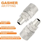 SIZE: 1/2 inch NPT male thread × 1/2 inch body size, interchangeable with most manufacturers; maximum working pressure is 300 psi.1/4'' basic flow size with Max working pressure of 300 PSI. HIGH QUALITY: High strength, high hardness premium solid brass with thick wall, more durable than iron and iron galvanized pipe fittings. MULTIFUNCTION: For switching quickly between different air tools and accessories with ease during applications. COUPLER SLEEVE:A better grip when connecting and disconnecting; sleeve guard helps reduce the risk of accidental disconnects and protects the coupler sleeve OCCASION APPLICATION: Great for professional jobsites, in automotive shops or at home in the garage for air hose, air compressor, air tools, air nailer, air blow , pressure washer