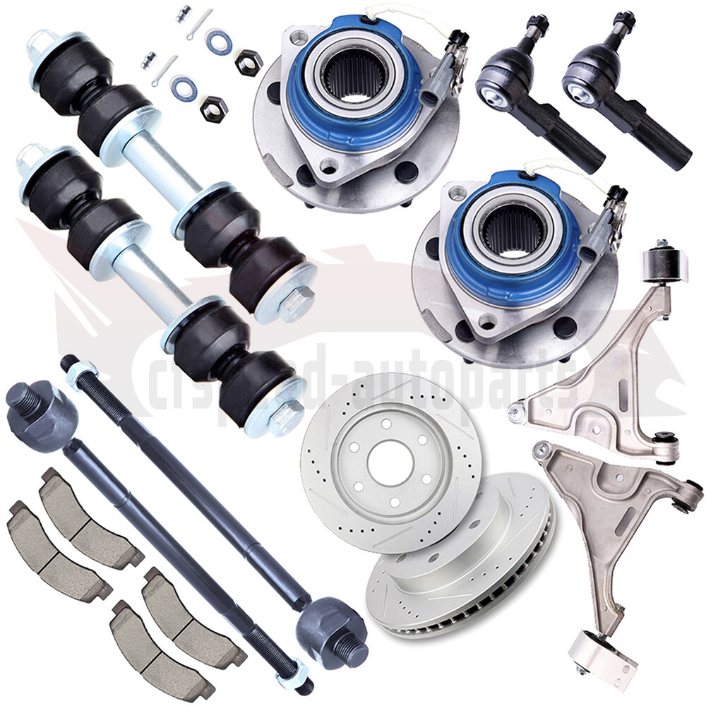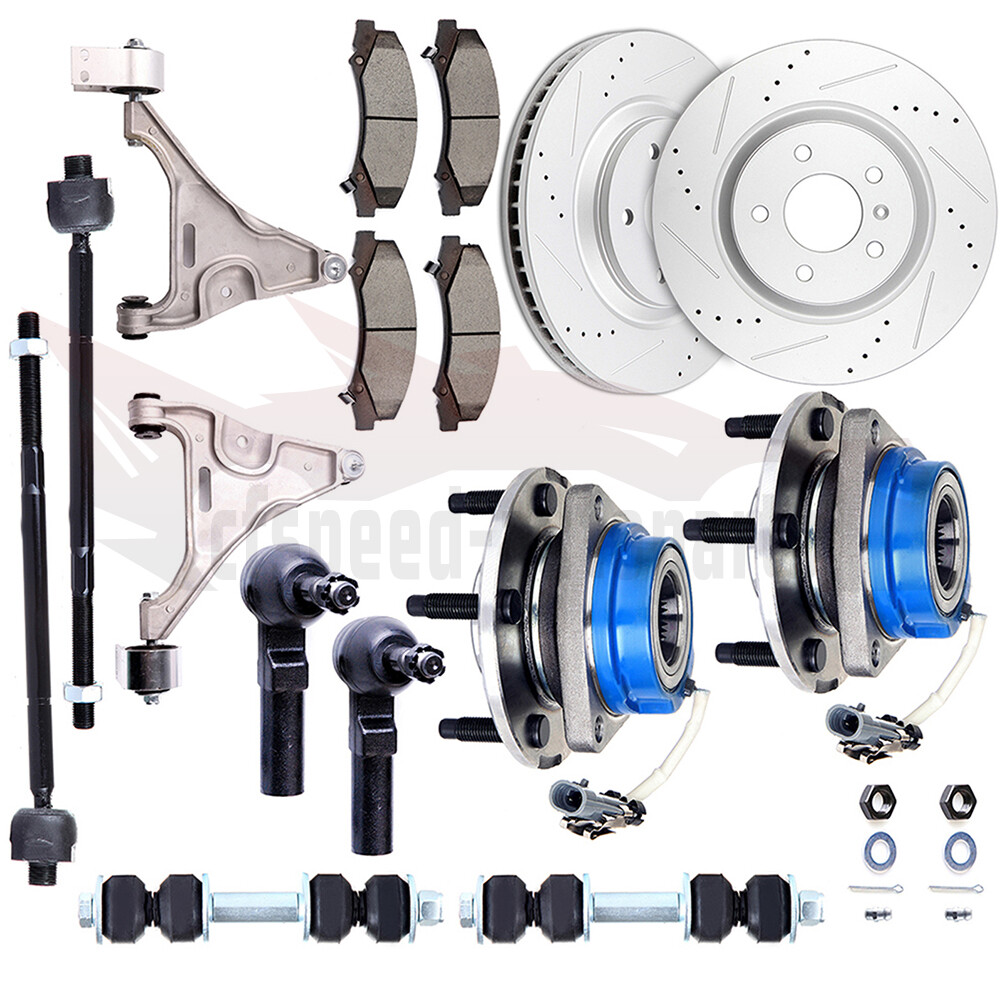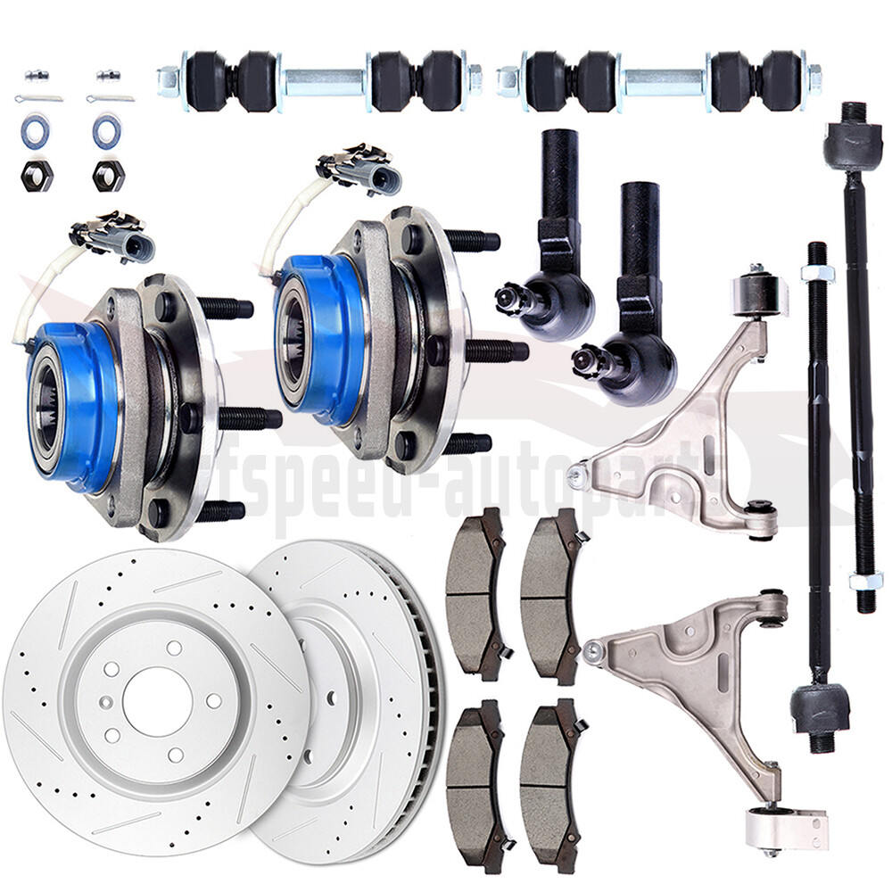 1.Fit For 2006-2011 Buick Lucerne 2006-2011 Cadillac DTS 2.Package Includes: 2x Wheel Hub Bearing -513121F 4x Ceramic Brake Pads -D1159-8269 2x Front Inner Tie Rod End -EV260 2x Front Outer Tie Rod End -ES3452 2x Front Sway Bar End Link -K5255 1x Front Lower Control Arm And Ball Joint - Driver Side -K80354 1x Front Lower Control Arm And Ball Joint - Passenger Side -K80355 2x Brake Rotors -55124 3.Notes Cfspeed-autoparts 12PCS Front Wheel Hub Bearing with Brake Rotor Pad For 2006-2011 Lucerne DTS 1.Fit For 2006-2011 Buick Lucerne 2006-2011 Cadillac DTS 2.Package Includes: 2x Wheel Hub Bearing -513121F 4x Ceramic Brake Pads -D1159-8269 2x Front Inner Tie Rod End -EV260 2x Front Outer Tie Rod End -ES3452 2x Front Sway Bar End Link -K5255 1x Front Lower Control Arm And Ball Joint - Driver Side -K80354 1x Front Lower Control Arm And Ball Joint - Passenger Side -K80355 2x Brake Rotors -55124 3.Notes (1).Please check the fitment chart above before payment making sure all the suspension parts listed on this page are compatible with your automobile. (2).Please refer to Moog official website before narrowing down your search so as to avoid unnecessary item not as described return requests. (3).Please contact our customer services for targeted discount after all the items are received if you have reached any targeted discount thresholds, the terms of which is at the bottom of this page. Ball Joint Replacement Guideline: If there is a knocking or clunking noise in the area of the front axle when the car is traveling over road bumps, potholes or curbs, then there is usually a defect in a component of the wheel suspension. Picture(A) The side of the front axle from which the (vibration) noise is emanating can already be determined during a test drive. The type of noise also already provides certain indications for maintenance regarding which components might be faulty. Picture(B) 1.Raise the vehicle and remove the front wheels. 2.To loosen the fastening screws and fixing nuts of the compression ball joint more easily, spray them with rust remover and allow to act for a few minutes. Picture(C) 3.Loosen the fastening screws of the broken ball joint on the control arm and remove the nuts. Picture(D) 4.Loosen and remove the fixing nut of the ball joint on the steering knuckle. Tip:If the ball stud rotates, hold the ball stud in place with a hexagon socket. Picture(E) 5.Remove the bad or worn ball joint from the control arm. 6.Loosen the compression ball joint on the steering knuckle using a suitable special tool. Picture(F) 7.Clean the cone connection. Tip:For better sealing and durability of the ball joint sleeve, a little silicone grease can be applied to the contact surface. Picture(G) 8.Insert new compression ball joint in the control arm and steering knuckle and tighten with new fixing nuts. 9.Reinstall front wheels. Lower the vehicle and tighten the wheel studs to the tightening torque specified by the vehicle manufacturer. 10.Measure the chassis and adjust it using the various holes on the compression ball joint if necessary. 11.Finally, carry out a test drive. Sway Bar Stabilizer Link Replacement Guideline: While driving, the following signs may indicate a faulty sway bar stabilizer link: (1).Rattling and thumping noises on rough roads. (2).Imprecise vehicle handling. (3).Stronger inclination of the vehicle during cornering. If the sway bar stabilizer link is found to be defective, it should be replaced as described below. Picture(A) 1.Raise vehicle and remove front wheels. Tip:Always check both stabilizer links and replace them in pairs if necessary. 2.Spray fastening nuts of the stabilizer link with rust remover and let act for a few minutes. Picture(B) 3.Loosen the lower fastening nut of the stabilizer link at the stabilizer and remove. Tip:If the ball stud also starts to turn, hold it with a suitable tool. 4.Press stabilizer link out of torsion bar. Picture(C) 5.Loosen the upper fastening nut of the stabilizer link at the suspension strut and remove it. Tip:If the ball stud also starts to turn, hold it with a suitable tool. Picture(D) 6.Press stabilizer link at suspension strut out of bracket. Picture(E) 7.Insert new stabilizer link at suspension strut. Picture(F) 8.Tighten stabilizer link at suspension strut to the tightening torque specified by the vehicle manufacturer. Tip:Secure the ball stud against twisting with a suitable tool. Picture(G) 9.Insert new stabilizer link at stabilizer. 10.Tighten stabilizer link at stabilizer to the tightening torque specified by the vehicle manufacturer. Tip:Secure the ball stud against twisting with a suitable tool. Picture(H) 11.Remount the front wheels. Lower the vehicle and tighten the wheel studs to the tightening torque specified by the vehicle manufacturer. Tip:Even if replacing the stabilizer link does not directly affect the chassis setting, we recommend checking the axle setting and adjusting if necessary after working on the suspension. 12.Conclude with a test drive. Tie-Rod End Replacement Guideline: If you feel a bump in the steering when driving over road bumps or curbs, this might be due to worn tie rod ends or inner tie rods. Clicking noises during sudden steering movements can also be symptoms of a defective tie rod. In order to determine the exact cause and replace the defective tie rod, the car must be elevated with a vehicle lift in order to be examined more closely. This useful tip applies to the exchange of tie rod ends and inner tie rods, which together form the so-called tie rod. Picture(A) Note: Cleanliness is extremely important when working on the power steering. Incorrect work and contamination can lead to leakage and, in the worst case, to failure of the steering assistance. 1.Lift the vehicle and dismount the front axle wheels. 2.Spray the fastening nut of the tie rod end with rust remover and leave it on for a few minutes. Picture(B) 3.Dismount the front underride guard. Picture(C) 4.Loosen the fastening nut from the tie rod 
