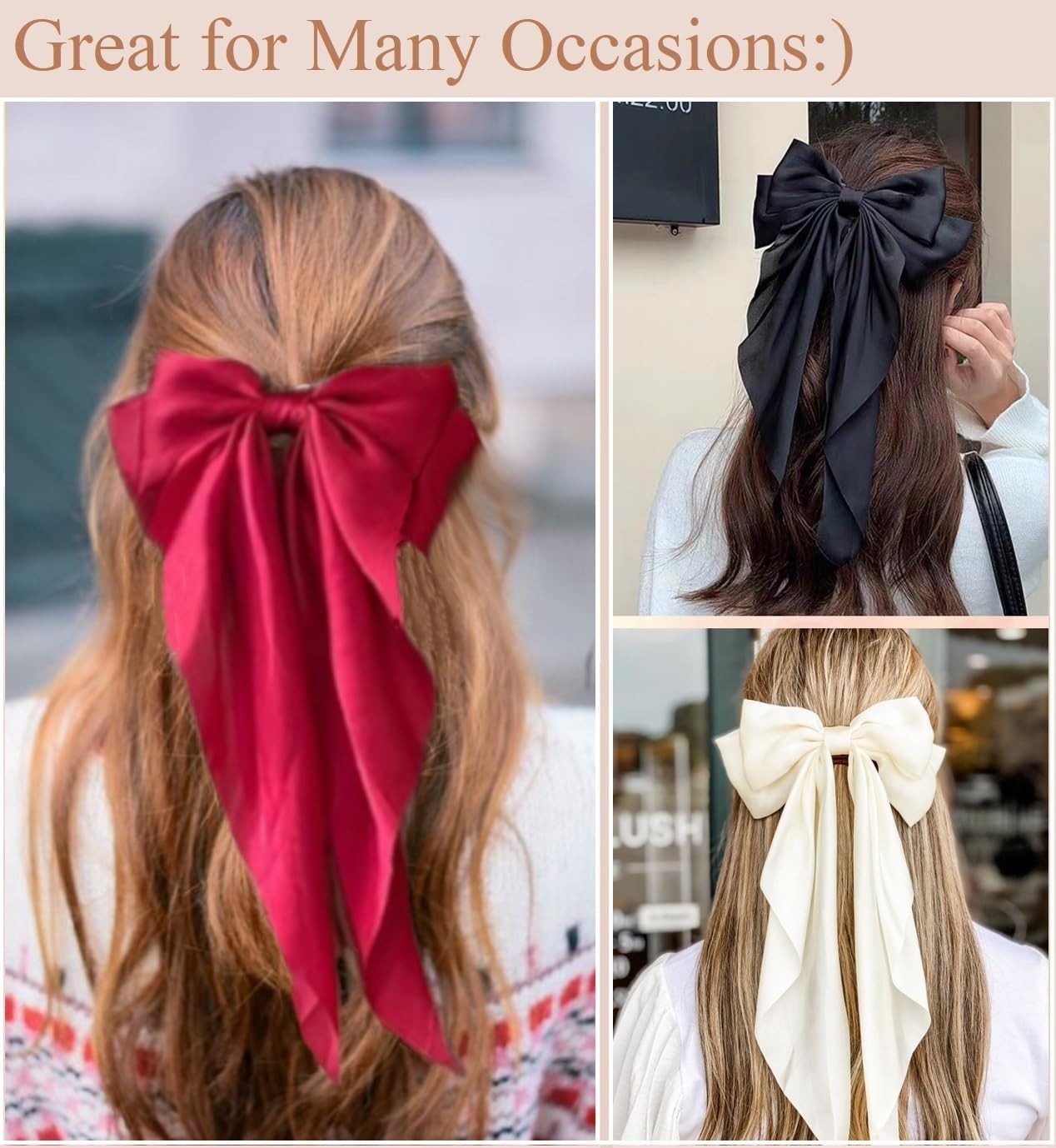 12PCS Hair Bows for Women Big Silky Satin Bow Clips with Long Tails Oversized, C outfits effortlessly! - Gift-Ready Delight - Perfect Gift Set: Looking for a Christmas or festive gift? These hair bows for women bulk make an ideal birthday, Christmas or holiday present. With 12 vibrant bows, your loved ones will be thrilled to unwrap a generous bundle of style! - Oversized Women Hair Bows: These large hair bows are more suitable for women with long hair. The cute hair accessories for women big bows make you look more fashionable and charming, offering a stylish and eye-catching accessory that stands out. Please note, these jumbo hair bows may be too big for little girls. - Quality Hair Ribbon Bow with Long Tail: Crafted with high-quality satin materials, our hair bows for women red are durable and comfortable to wear all day long. They hold their shape and color, making them a vibrant addition to your hair accessories collection. Shipping We offer FREE shipping on all orders! We ship within Three business days of payment, usually sooner. We use a selection of shipping services such as UPS, FedEx, USPS etc. We only ship to the lower 48 states, no APO/FPO addresses or PO Boxes allowed. Local pickups and combined shipping options are not provided at this time. Return You can return a product for up to 30 days from the date you purchased it. Any product you return must be in the same condition you received it and in the original packaging. Please keep the receipt. Customer satisfaction is very important to us. If you have any problem with your order, please contact us and we will do our best to make you satisfied. Contact Us If you have any queries, please contact us via ebay. We usually respond within 24 hours on weekdays. Please visit our eBay store to check out other items for sale! Thank you for shopping at our store.