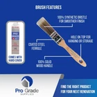 Pro-Grade Supplies Premium Paint Brushes Set includes 12 PK 1 Inch Flat Professional Grade at the Perfect Price: Pro-Grade paint brushes are made with the consumer in mind from quality parts to the affordable price compared to other high quality paintbrushes. Flat sash paintbrush is perfect for cutting in walls as well as trim. Pro Grade paint brushes are designed for long lasting and to be washed and reused for all your painting projects and touch ups. Use the cardboard cover to store properly. A thick quality synthetic filament blend is designed hold more paint to save time with less streaks and premium finish on your walls or trim. Perfect for all latex and oil base paints and stains. Thinner tip at ends provides better cutting control. Heavy duty solid wood handles are designed for comfort and control. This allows the professional painter or the novice to get great results on painting walls, trim, cabinets, doors, fences, decks, touch ups and arts and crafts. Pro Grade brushes are priced right to allow professional painters or the novice painter the ability to use a high quality paintbrush without breaking the bank. From the thinner tip for cutting ease to the stainless steel ferrule connected to the solid wood comfort handle you will be satisfied.
