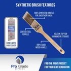 Pro-Grade Supplies Premium Paint Brushes Set includes 12 PK 1.5 Inch Angle Professional Grade at the Perfect Price: Pro-Grade paint brushes are made with the consumer in mind from quality parts to the affordable price compared to other high quality paintbrushes. Angle sash paintbrush is perfect for cutting in walls as well as trim. Pro Grade paint brushes are designed for long lasting and to be washed and reused for all your painting projects and touch ups. Use the cardboard cover to store properly. A thick quality synthetic filament blend is designed hold more paint to save time with less streaks and premium finish on your walls or trim. Perfect for all latex and oil base paints and stains. Thinner tip at ends provides better cutting control. Heavy duty solid wood handles are designed for comfort and control. This allows the professional painter or the novice to get great results on painting walls, trim, cabinets, doors, fences, decks, touch ups and arts and crafts. Pro Grade brushes are priced right to allow professional painters or the novice painter the ability to use a high quality paintbrush without breaking the bank. From the thinner tip for cutting ease to the stainless steel ferrule connected to the solid wood comfort handle you will be satisfied.