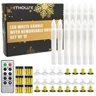 12 Set Halloween Christmas Window Candles Lights with Timer Battery Operated Electric LED Taper Candles Flameless for Windows, Gold Candle Holders, Suction Cups & 24 PCS Battery Included (12 Set) Product Details Color: Gold Brand: Kithouse MPN: T21 UPC: 881949433247 EAN: 0881949433247 Finish Type: Gold Base Material: Plastic Product Dimensions: 2"D x 8"W x 8"H Item Weight: 1.2 Kilograms Lamp Type: Night Light Product Dimensions : 2 x 8 x 8 inches; 2.65 Pounds Item model number : T21 Batteries : 24 AAA batteries required. (included) Date First Available : July 17, 2020 Manufacturer : Kithouse Customer Reviews: 4.1 4.1 out of 5 stars 636 ratings Finish Type: Gold Base Material: Plastic Product Dimensions: 2"D x 8"W x 8"H Item Weight: 1.2 Kilograms Lamp Type: Night Light Shade Color: Gold,White Shade Material: Acrylonitrile Butadiene Styrene Switch Type: Push Button Style: Modern Brand: Kithouse Color: Gold Special Feature: 3D Flame ,Battery Operated, Dimmable, Cycle Timer, Remote Light Source Type: LED Material: ABS Plastic Room Type: Bedroom Recommended Uses For Product: Decoration Power Source: Battery Powered Controller Type: Remote Control Number of Light Sources: 12 Connectivity Technology: IR Included Components: 12 x candles, 12 x gold candle holders, 12 x suction cups, 1 x remote control with timer, 2 AAA batteries per candle (24pcs battery included), 1 x manual, 1 x gift box. Is Waterproof: false Bulb Shape Size: F10 Mounting Type: Tabletop Number of Items: 12 Lighting Method: LED Control Method: Remote Indoor/Outdoor Usage: Indoor Water Resistance Level: Not Water Resistant Number of Pieces: 12 Efficiency: 100% Voltage: 3 Volts Brightness: 2900 Millicandela Is Cordless?: Yes UPC: 881949433247 Size: 12 set Manufacturer: Kithouse Part Number: T21 Item Weight: 2.64 pounds Item model number: T21 Batteries: 24 AAA batteries required. (included) Finish types: Gold Special Features: 3D Flame ,Battery Operated, Dimmable, Cycle Timer, Remote Batteries Included?: Yes Batteries Required?: Yes Color Temperature: 3000 Kelvin Date First Available: July 17, 2020 INCLUDES EVERYTHING YOU NEED - Package includes 12 x candles, 12 x gold candle holders, 12 x suction cups, 1 x remote control with timer, 2 AAA batteries per candle (24pcs battery included), 1 x manual, 1 x gift box. AUTOMATIC TURN ON/OFF - Daily 24-hour cycle. 2H/4H/6H/8H timer setting function. Set the candle to 2/4/6/8 hours on, 22/20/18/16 hours off. Set it and forget it! Note: When we set the timer 2H/4H/6H/8H, please do not move the candles or press the remote control even the candles is off. If the candle is moved or we press the remote control, it may cause the candle power off or reset, so it will not turn on again. REMOTE CONTROL & NO MESS - Place these candles wherever you want, then activate them with remote control, very easy to use. Kithouse flameless candles with gold holders and suction cups, meet everything you need for your window or mantle display. No flame, no dripping wax, smokeless and unscented, let you enjoy all the benefits of candlelight without any of the drawbacks! LONG LASTING BATTERY - Each candle requires 2 x AAA batteries (battery included), powerful enough to last the entire holiday season. Cordless battery operated design allows installation anywhere in your home. Best candle decoration for Halloween Christmas! 100% SATISFACTION GUARANTEED - Each window flameless candle has been fully tested before leaving the factory. If there is any problem with the window flameless candle, please feel free to contact our customer service, and you will get a satisfactory solution.