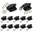 Specification: Product Name: Magnetic Catch Material: Plastic, Magnet, Metal Finish: Zinc Plated(Catch) Color: Black, Silver Tone Dimension: 46x 38 x 20mm / 1.81-inch x 1.5-inch x 0.078-inch (L*W*H) (Retracted) Extended Overall Length: 56mm / 2.26-inch Mounting Hole Distance: 25mm / 1-inch Mounting Hole Diameter: 3mm / 0.12-inch(D), 8 x 3mm/0.31-inch x 0.12-inch(L*W) Widly Used: Push to open door catch can be used in cabinet, drawer, cupboard, wardrobe, chipboard, sideboard, cooking utensils and another furniture. Package included: 12 x Magnetic Pressure Catches & Round metal plates 【12 Pack】 Set include 12 pcs black cabinet magnet catches, 12 pcs round metal plates with high quality free screws. 【Size】Extended Overall Length 2.2"(56 mm), Retracted Overall Length 1.81"(46 mm) 【Material】 : Made from durable plastic and steel metal plate, our white magnetic cabinet catches are designed to last and last 【Easy To Install】 Mounting the two elliptical holes firstly, in order to adjust place to suit closing. So you don't worry about whether it could be difficult to locate the mount exactly. Works with a Variety of Cabinet and Furniture Doors 【Application Scenarios】Push to open door catch can be used in cabinet, drawer, cupboard, wardrobe, chipboard, sideboard, cooking utensils and another furniture.