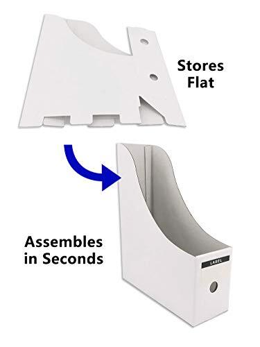 These magazine file holders are a game-changer for keeping my desk organized! The sturdy cardboard construction holds up well, and the self-adhesive labels make sorting a breeze. Love how they flatten for storage and assemble in seconds—super convenient. Perfect size for documents and magazines, and the clean white look fits any space. Fast shipping and great quality—highly recommend!