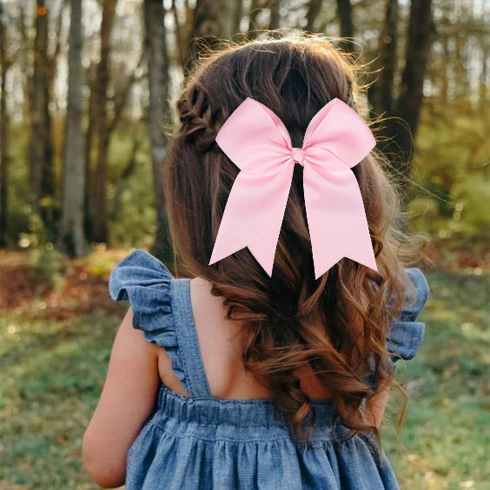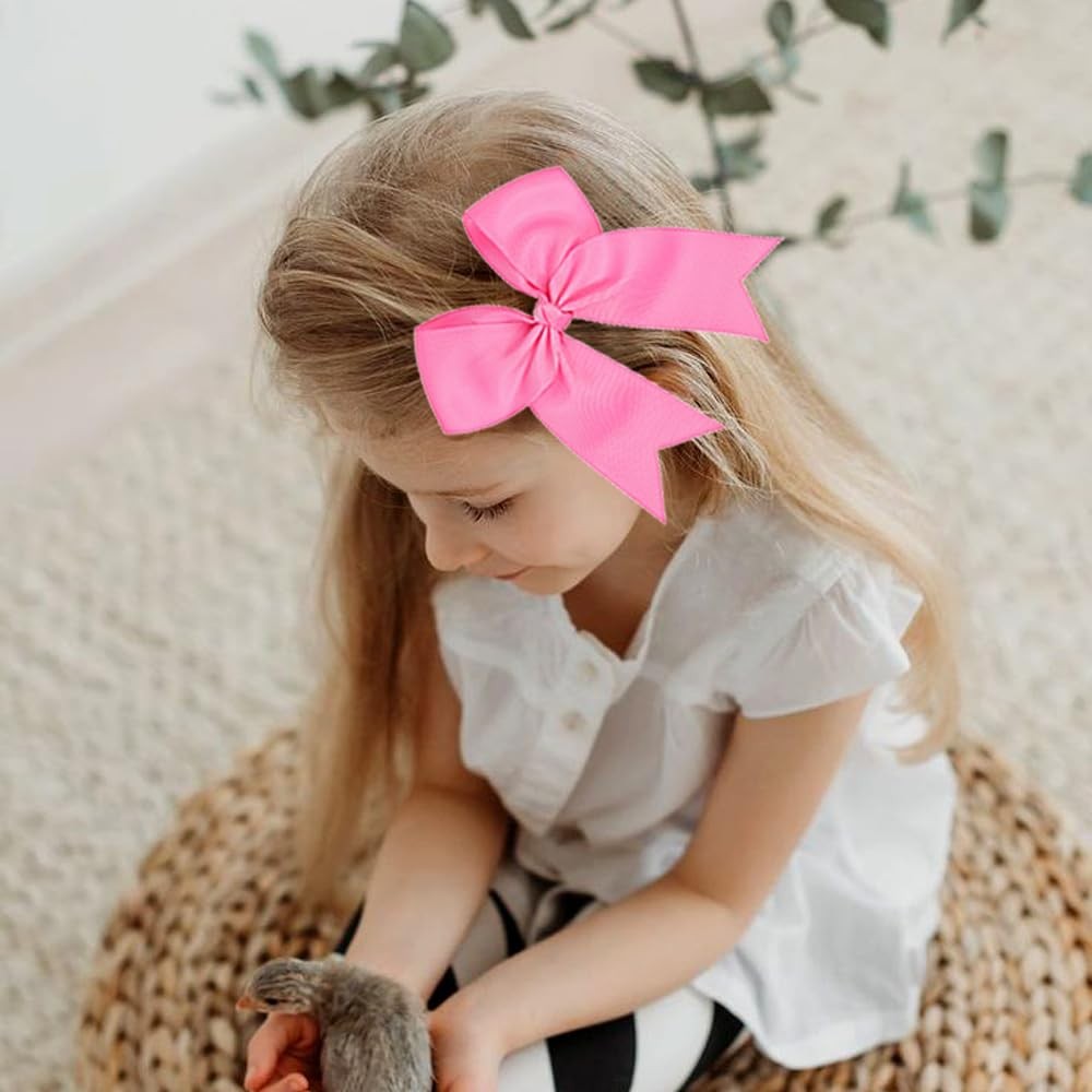 Stylish & Adorable: These 5-inch wide boutique hair bows, crafted from first-class grosgrain ribbon, boast a charming look with cute, long tails. Secure Alligator Clips: Each bow features a 1.8-inch metal alligator clip on the back, designed to be stretchy, thick, and durable. The clip has no teeth, ensuring hair-friendly and comfortable wear. Hair-Friendly & Long-Lasting: Made from high-quality grosgrain ribbon, these big cheer bows maintain their shape, providing confidence during active movements without worrying about losing the bow. Heat-sealed ribbon ends prevent fraying. Perfect Gift Idea: This set of 12PCS cheer bows, available in 12 popular colors, makes an excellent gift for girls who adore big bows and celebrate special milestones. The fantastic variety of simple girls' hair bows allows them to match any outfit, and they can be worn with woven headbands, crochet headbands, or kufi hats, adding to their versatility. Ideal for thoughtful gifts to friends and relatives. Versatile & Loved: Besides cheerleading, these sports hair accessories suit various occasions, including baby showers and Christmas. Loved by girls of all ages, the fantastic variety of simple baby hair bows ensures easy outfit matching with different headbands or hats.