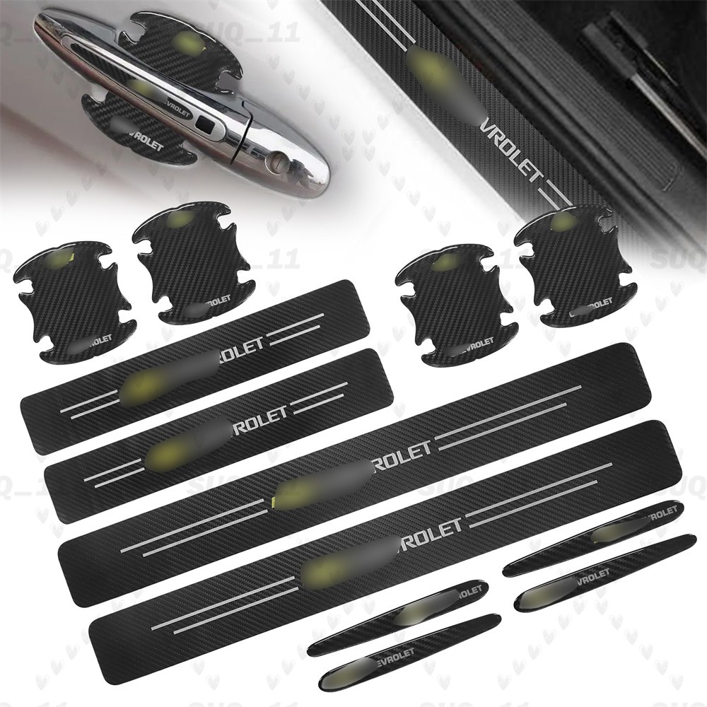 Features: MATERIAL of Car Door Sill Protector: Car door sill protector for CHEVROLET made of high quality carbon fiber textured vinyl sticker + epoxy resin resistant, durable and effective in protecting car door sills. FITS PERFECTLY: The customized size of door sill protector reflective sticker fits CHEVROLET perfectly. With just a little creativity, you can make the beauty of your car stand out. It won't get in the way of opening and closing the doors or damage the vehicle. PROTECTIVE: This leather carbon fiber automotive door entry guard covers existing scratches on the door sill of the car to prevent scratches when entering and exiting the vehicle. EASY TO CLEAN: When the car door sill protector reflective sticker is stained with dirt or oil, simply wipe it with a damp rag and it will look like new with a gentle wipe. EASY TO INSTALL : Before installation, please wipe the car door sill clean to ensure that there is no oil and dust, then remove the protective paper on the back of the sticker, gently stick the sticker on the door sill above to ensure that no air bubbles are generated. Color: Yellow Black Material: Carbon Fiber Texture Vinyl Sticker + Epoxy Resin Package Include: 4PCS Door Sill Scuff Cover Stickers (2 front + 2 rear) 4Pcs Door Handle Stickers 4PCS Door Cup Stickers