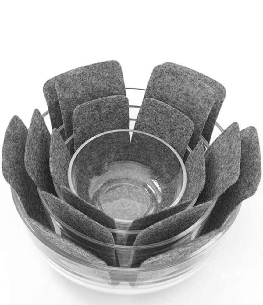 Specifications: Color: Grey Material: Non-woven Size: As picture show Packaging Included: 12pcs(38cm * 4pcs, 35cm * 4pcs, 26cm * 4pcs) Features: Made of quality non-woven fabric, these POTS and pans protective pads are thick, durable and reusable with a non-slip texture that stays stable when stacked or nested. They can be trimmed to any size you like according to your needs. Put a protective cover between the POTS to avoid scratches and extend the service life of the POTS. In addition to easy storage, you can even use them to prevent POTS from damaging countertops. They are suitable for storing kitchen utensils and transporting them over long distances. Great for stacking your kitchenware, bowls, plates, cups, glassware, baking utensils, stoneware, ceramics, frying pans, etc. You will get a set of 12 grey POTS and pans protective covers in 3 sizes, 38cm, 26cm and 35cm, with 4 pieces of each size to meet your daily needs. You can cut the size according to your needs, which is very convenient for your use. The pot protector is made of non-woven fabric, which can be reused, has a non-slip texture design, and is stable when stacked or nested. Place these wok protectors between the wok sets to protect them from scratches and bruises and to protect their non-stick coating and appearance, extending the life of the wok sets. Easy to use, provides perfect protection, suitable for stacking your cookware, bowls, plates, cups, glassware, baking utensils, stoneware, ceramics, frying pans, etc.