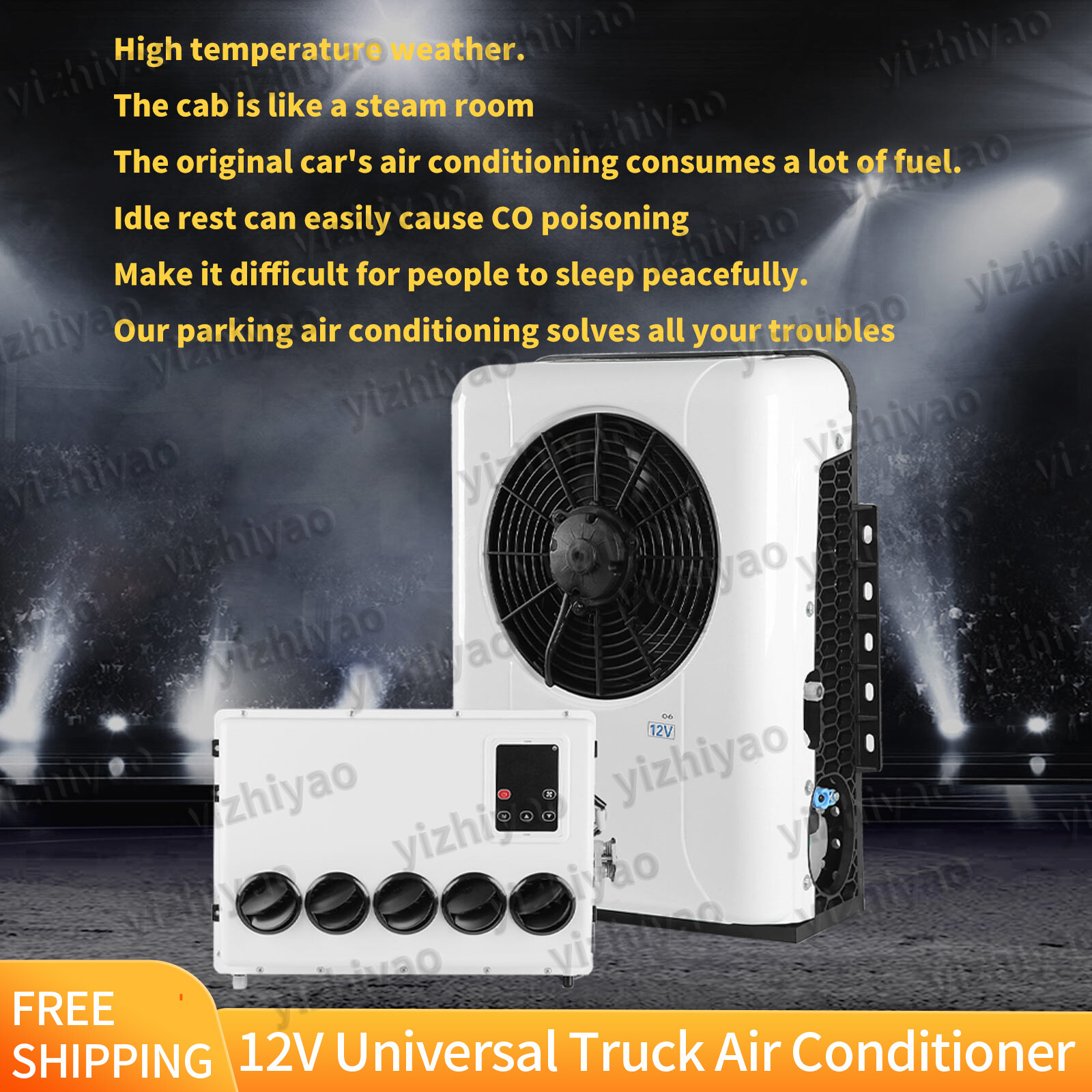 Store Categories Store Categories Other 12000 BTU Air Conditioner Mini Split A/C 12V For Semi Trucks Bus RV Caravan Vans Product Description Current (A):40A-80A Rated power:960W Cooling capacity:2800W Refrigerant:R134A 600g (Not include in the package) Oil:90ml-120ml POE68 Circulating air volume: 600m³/H Range of Speed:1000-3000 Outdoor unit size:660*550*200 (mm) Indoor unit size:460*320*160 (mm) It is powered by the battery of the Truck car. WHAT IS PARKING AIR CONDITIONER ? The parking air conditioner is a kind of in-car air conditioner. It refers to the equipment that uses the on-board battery DC power supply (12V) to make the air conditioner run continuously when parking and waiting and resting, and to adjust and control the temperature, humidity, flow rate and other parameters of the ambient air in the car, so as to fully meet the comfort cooling needs of the truck driver. Normally drivers leaving the engine running for hours to use the air conditioner during parking or rest time at night, it is bad for the environment and tons of fuel wasted, it also wears down the engine faster. Parking air conditioner works with truck battery power without engine on which can save energy and fuel and at same time provide safe and comfortable environment for driver. Fuel,Energy And Money Saving. Digital frequency conversion control, more efficient and more energy saving. Use energy saving mode when you sleep at night, it can run continuously 6 to 8 hours. Use super mode in hottest hours, cooling rapidly and stronger air supply. Installation 1.Remove the outer casing. 2.Select the installation position and mark the punch position. (Select 5 installation points) 3.Punch holes at the mark points. (Tool: an 8mm/0.3inch drill) 4.Use a pull riveter to fix the pull rivet nut at the marked hole. 5.Fixed the damping pad and sleeve at the marked points on the external 6.machine. 7.Fixed the external machine. 8.Install the internal machine: install an expansion valve. 9.Fixed internal machine mounting plate. 10.Fixed the internal machine. 11.3/8inch pipe (high-pressure pipe) connected to the condenser. 12.Connect internal and external machine wires and power cord. 13.Connect internal and external pipes, and fixed the evaporation box. 14.Connect internal and external wires. 15.Install the drainage pipe. 16.Vacuum for 15-20 minutes. 17.Refill refrigerant (Pure R134a) 400-450g/0.88-0.99lbs. 18.The power cord is connected to the battery. 19.Install the outer casing. 20.Winding tape to fix the internal and external machine connecting pipe and the internal and external machine connecting wire. 21.The installation is complete. Package Included 1* Air Conditioner Kit (2 packages) 1* Remote Control Other Accessories for Assembly Note: --Import duties, taxes and charges are not included in the item price or shipping charges. These charges are thebuyer's responsibility. -Please check with your country's customs office to determine what these additional costs will be prior to bidding/buying. After-sales service: When you receive our products, we value your feedback on your experience. If you find any dissatisfaction in the process of using the product, please contact our merchant at the first time. Please be assured that we will handle your feedback with a positive attitude and professional action. It is vital that you communicate with us before you feel dissatisfied. So that we can quickly understand your troubles and needs, and take effective measures to improve and solve them, you can contact us through the “Seller Issues”. Due to the different time zones we reply within 24 hours, we sincerely thank you for your trust and support. Our Business Hours Monday - Friday, 9:00am - 6:30pm (GMT +8). (Except weekends and holidays). Payment Policy Shipping Policy Returns Policy Payment Policy Shipping Policy 1. After the item is ordered, it will be shipped within 2-4 working days 2. Please confirm your valid address before placing an order 3. The global standard arrives in about 7-15 days. Due to the different customs clearance efficiency in different regions, it may cause delays in the time limit 4. Duties generated by customs of various countries shall be borne by the buyer. Returns Policy When you receive our products, we value your feedback on your experience. If you find any dissatisfaction in the process of using the product, please contact our merchant at the first time. Please be assured that we will handle your feedback with a positive attitude and professional action. It is vital that you communicate with us before you feel dissatisfied. So that we can quickly understand your troubles and needs, and take effective measures to improve and solve them, you can contact us through "Seller Issues". Due to the different time zones we will reply to your email as soon as po ssible on working days, we sincerely thank you for your trust and support. Copyright © 2023 Dianxiaomi