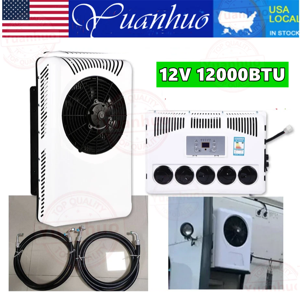 12000 BTU Truck Cab Air Conditioner 12V Split AC Fits Semi Trucks Bus RV Caravan Product Description Current (A): 35-50A Rated power: 350W-850W Cooling capacity: 2600W Refrigerant:R134A 600g (Not include in the package) Since the refrigerant cannot be transported, you need to buy it yourself Oil: 400ML POE 68 Outdoor unit size: 69CM*40CM*18CM Indoor unit size: 45CM*31CM*15CM It is powered by th e battery of the Truck car WHAT IS PARKI NG A I R CON DITIONER ? --The parking air conditioner is a kind of in-car air conditioner. It refers to the equipment that uses the on-board battery DC power supply (12V) to make the air conditioner run continuously when parking and waiting and resting, and to adjust and control the temperature, humidity, flow rate and other parameters of the ambient air in the car, so as to fully meet the comfort cooling needs of the truck driver. --Normally drivers leaving the engine running for hours to use the air conditioner during parking or rest time at night, it is bad for the environment and tons of fuel wasted, it also wears down the engine faster. Parking air conditioner works with truck battery power without engine on which can save energy and fuel and at same time provide safe and comfortable environment for driver. Fuel,Energy And Money Saving. --Digital frequency conversion control, more efficient and more energy saving. Use energy saving mode when you sleep at night, it can run continuously 6 to 8 hours. Use super mode in hottest hours, cooling rapidly and stronger air supply. Key Features Good Cooling Effect: The parking air conditioner is a kind of in- car air conditioner. It uses the on- board battery DC power supply (12V) to make the air conditioner run con tinuously to adjust and control the temperature, humidity, flow rate, and other parameters of the ambient air in the car, to fully meet the comfortab le cooling needs of the truck driver. Saving Energy: The parking air conditioner works with a truck battery wi thout an engine. Meanwhile, it adopts digital frequency conversion and al lows you to use the energy- saving mode when you sleep at night, saving you lots of energy. Long Endurance: It can work continuously for about 6 to 8 hours on a full charge, which can meet your daily needs. Highlights Brand New, With High Quality Direct Replacement Trouble-free Installation Stylish Appearance Strong and Durable Exquisite Workmanship Easy to Clean Stable Performance Long Service Life Remote Control Notes -- We strongly recommended professional installation. Please contact us if you have any questions. -- Please allow the slight difference caused by the shooting light and 1- 3cm error due to manual measurement, and make sure you do not mind b efore ordering. Fits (As a Reference) For car Package Included 1* Air Conditioner Kit 1* Remote Control Other Accessories for Assembly Package Include: 1 Set Air Conditioner(There is an installation video) 📢 Please pay attention to the following points when installing: 1. When installing the air conditioner outdoor unit, keep it away from heat sources. ❌🔥(eg, keep away the engine) 2. When adding a refrigerant, pay attention to the high -voltage meter of the high pressure pipe, not more than 15 kg ❗❗❗ 3. It is recommended to use a big brand refrigerant🥇 4.A vacuum state is required before adding refrigerant 5.12V stable power supply, the positive and negative wires should be connected to the battery