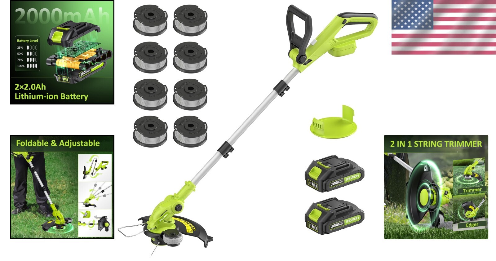 Cordless Grass Trimmer Weed Wacker with 2 Batteries