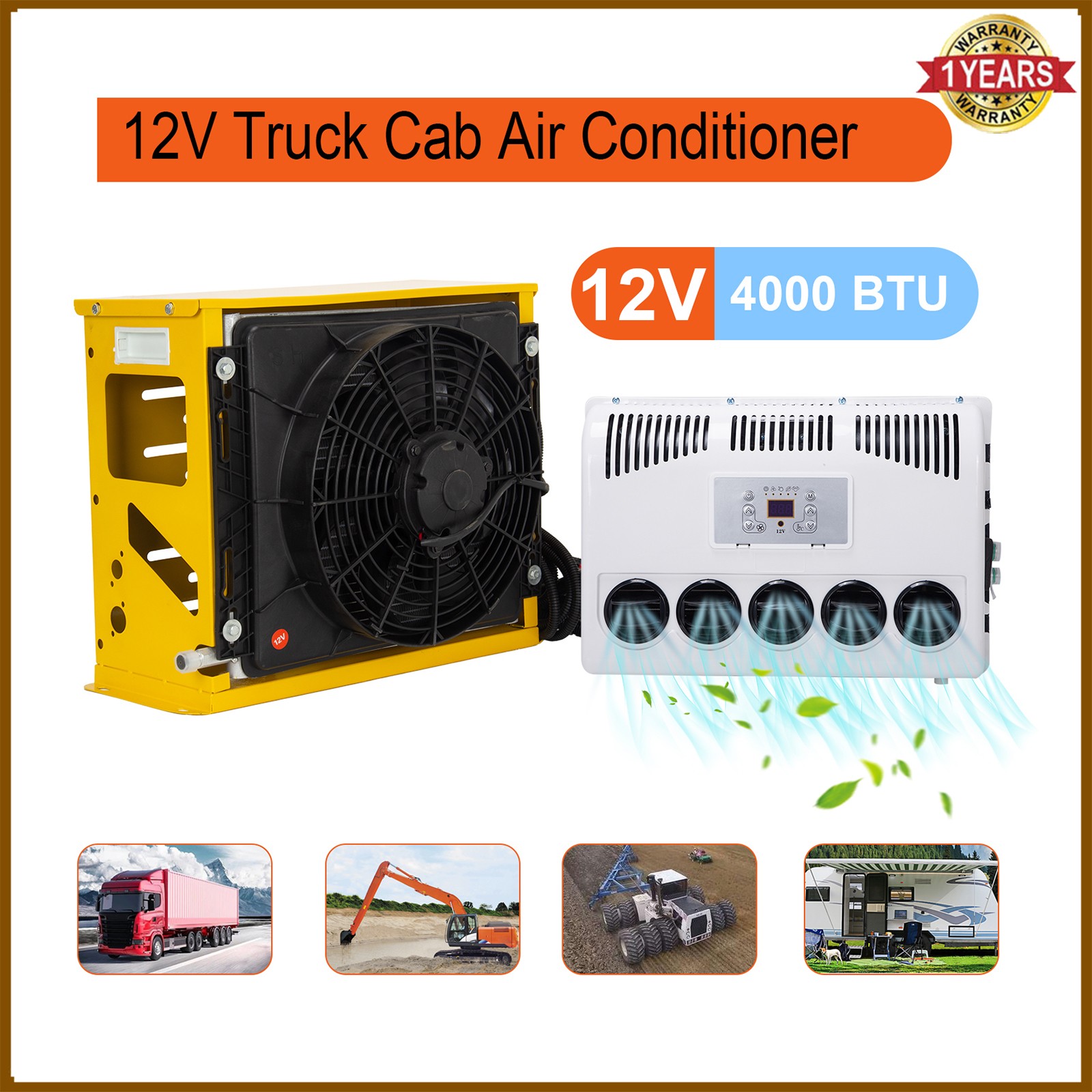 Product Description About this 12V DC PARKING AIR CONDITIONER It is powered by the battery of the vehicles.The parking air conditioner is a kind of in-car air conditioner. It refers to the equipment that uses the on-board battery DC power supply (12V) to make the air conditioner run continuously when parking and waiting and resting, and to adjust and control the temperature, humidity, flow rate and other parameters of the ambient air in the car, so as to fully meet the comfort cooling needs of the truck driver. These DC 12V products are now widely used in the ventilation and air conditioning systems for the cabs in trucks, tractors and construction machinery. Multi installation ways suitable for most vehicles in the market. Specification: Air volume: 320m ³/ h Noise: ≤ 65dB Undervoltage protection: 9-10V Under voltage recovery: 11-13V Fan speed regulation method: 5-speed regulation Compressor speed regulation method: stepless speed regulation Internal machine size 500 * 160 * 350mm Air conditioning external unit: Rated voltage: DC12V Rated power: 360W Maximum power: 740w Refrigeration capacity: 1100W EER: 3.05 Refrigerant: R134a (not include in the package) Compressor displacement: 13cc/r Compressor speed regulation method: infinitely variable speed External unit size: 505 * 310 * 375 1) rooftop mounted air conditioner for van, truck, commercial vehicles, special vehicle, trailer, earth-moving machine, motorhome, RV (recreational vehicle) 2) back-wall mounted air conditioner for truck, tractor, trailer, heavy duty truck, light truck, truck cab, truck sleeper, sleeper cab. This is the most popular truck parking air conditioner on the market. Package included: 1 Set 12V Electric Truck Air Conditioner Shipping • Place your order before 4 pm EST and it will be shipped the same day, Monday to Friday, excluding major holidays. • Please verify your address and make sure that it is your current address before making your payment. Any address change requests after your payment CANNOT be guaranteed. • We do not include invoice with our shipments. Feedback • Positive feedback is automatically done once your order is shipped. • We appreciate all our customers to post a Positive Feedback and "Five-Star" scores. • If for any reason you are not satisfied with your purchase. Please contact us via eBay Message and We will do our best to satisfy you! Return • We will gladly accept your return within 30-Days of the original purchase. - As a responsible seller, we guarantee free exchange or full refund, if item is defective. - We can refund or replace it if the item is not as described or damaged in transportation. Contact Us • Send us a message on eBay and we will answer within 24h on business days.