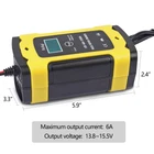 12V 6A Car Battery Charger Maintainer Auto Trickle RV for Truck Motorcycle ATV Features 【3-Phase Automatic Charging】 Automatically charge the batteries with 3-phase charging setting ( fast charge, full charge and trickle charge ) . Upgrade chip can help monitor the whole charging process for efficient charging. Will auto-stop when fully charged. 【Pulse Repair Mode】 You can start the repair mode with a simple press on the button. High and low frequency pulse technology can repair and activate old or loss batteries to some degree. 【Digital LCD Display】 A built-in LCD screen can clearly show the real-time charging voltage, current, temperature, battery charging state, winter or summer mode, and repair mode. 【Safety Protections】 The battery charger has a flame-retardant, anti-corrosion, and electric shock resistant ASB shell and a low-noise cooling fan, Multiple security protections including overheating, over-current, overcharging, reverse polarity, short-circuits, and stable voltage. 【Wide Application】 This battery charger is perfect for 12V 4AH~100AH lead-acid batteries such as AGM, GEL, flooded (wet), calcium type deep cycle and VRLA maintenance free lead acid batteries of cars, motorcycles, boats, RV, SUVs, ATVs, etc. Specifications Material: ABS Shell&Copper Motor Color: Yellow Input Voltage: 110-240V AC, 50-60Hz Output Voltage: 13.8-15.5V Maximum Output Current: 6A Application: 12V 4AH - 100AH Lead-Acid Batteries Size: 5.9*3.2*2.4inch Output Cord Length: 21.7inch Package Included 1 x Car Battery Charger 1 x User Manual Note: 1.It can NOT charge lithium batteries; 2.It can NOT charge batteries below 6V. 3. It can Not repair dead or severely damaged batteries, NOR make old or loss batteries brand new again. Payment Delivery details Terms of sales About us Contact us Payment • We accept varies payment. Paypal,Google Pay,Visa,Master Card,Amex,Discover • All payments must be received within 10 days after auction won. • Non-pay bidder will get a negative feedback and an unpaid alert from eBay. • E-checks via PayPal will be hold until it is cleared. Delivery details Shipping: • Free Shipping within the 48 States. We ship within the United States only. The term EXCLUDES the states of Alaska, Hawaii and all off-shore U.S. territories and possessions such as Puerto Rico, Guam and Virgin Islands. We do not ship to APO and FPO. Delivery Time: 3-8 business days (Varies by Destination) • Shipping Carriers are responsible on the delivery time. If you have any questions or problems with delivery, please contact carrier directly. Standard Order Processing time: • All items will ship within 24 hours (Monday - Friday). • Payment cleared/received on Friday will be shipped on the next business days (Monday or Tuesday). • We are not responsible for carrier transit time. This information is provided by the carrier and excludes weekends and holidays. Note that transit times may vary, particularly during peak periods or in climate weather conditions, and that delivery times frames will need to be extended for any processing time frames in excess of 1-2 business days. • All Rights Reserved. Designated trademarks and brands are the property of their respective owners. Terms of sales • 30 DAY MONEY BACK SATISFACTION GUARANTEE | 360 DAY WARRANTY COVERS MANUFACTORY DEFECTS • Returns are permitted and must be initiated by the buyer within 30 days from delivery date. In order to return an item, you must contact to request an Return Merchandise Authorization Number (RMA). No return package will be accepted without a valid RMA number. All products are covered by our warranty against defects. If an item proves to be defective, please contact to have the product repaired or replaced. All of our products are covered by a 360-Day warranty. About us • Thank you for visiting our store. We hope you are satisfied with the item and our service. Contact us • Please send all correspondence through the eBay messaging system. • Messages will be replied during business hours: 9AM to 6PM Pacific Time. Monday to Friday only (excluding Holidays). After hours messages will be replied on the next business day.
