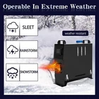 Warm tips The product manual is a generic version, please refer to the page details If there are any problems, please give feedback. Remote control The temperature can be adjusted via the remote control, which means it can be activated before entering the car in the cold morning. Control range within 30 meters Energy-saving fuel pump The fuel pump has high precision and sensitivity, the plunger supplies fuel, and the suction is stronger, ensuring the stability of fuel supply and providing powerful power. The fuel pump must be up and kept tilted between 40 and 90 degrees High altitude Working height up to 3,500 meters above sea level AIR HEATER Specification Heater Power:8KW Rated Voltage:12V Startup Current:15A Rated Current:3A Fuel Gasoline:Diesel only Heating Area:15m² Continuous Heat Supply Hours:48 Specification Power Consumption: 0.036KW/H Remote Control Range: 30m Outlet Dia.: 76mm Inlet Dia.: 26mm Heater Working Temperature: -40℃~+50℃ Oil pump Working Temperature: -40℃~+40℃ Fuel Consumption(L/h): 0.64 Single outlet Large air outlet, uniform turbine wind speed, improved thermal efficiency, large air volume, and sufficient air supply range Complete set of accessories There is a complete installation kit for easy use and installation Low noise The use of blower to control the speed, silent fan, silent oil pump and muffler can effectively reduce noise. Specifications: Material: Metal Color: All Black Size: 15.3×39×41.5cm (6×15.4×16.3") Voltage: 12V Power: 8000W Fuel: Diesel Complete combustion rate: 100% Fuel consumption: 0.1~0.24L Working temperature: -40°C~80°C Feature - All into one unit, saving space and easy to move. - Easy to install, remove and maintain. - Get rid of damage to car causing by the sudden drop of temperature. - Low noise: noise reduction processing with minimal noise. - Easy Installation: the compact design is good for using in a variety of narrow spaces. - Low fuel and power consumption for longer periods of operation. - Smooth, automatic room temperature control with temperature pre-set facility. - With continuous monitoring and diagnostic system. - Fuel supplied from the vehicle's own tank. - Applicable to: various diesel mechanical vehicles such as cars, buses, RVs, trucks, engineering vehicles, etc. Package included: 1 x Parking Heater (Receiver Switch) 1 x Blue Remote Control (Batteries NOT included) 1 x Air Filter 1 x Air Outlet Pipe 1 x Intake Pipe 1 x Exhaust Pipe 1 x Fixture Accessories Set 1 x Silencer Notice: 1. Please allow 1-5mm error due to manual measurement. Please make sure you do not mind before you bid. 2. The colors may have different as the difference display, please understand. Tip: It is normal for the machine to fail to ignite the first time . Please wait patiently. restart the machine after the machine stops , wait for a few minutes and do not press the key. when the oil pump works, it will be accompanied by ignition. if the ignition is successful, hot air will be emitted in 3 minutes.