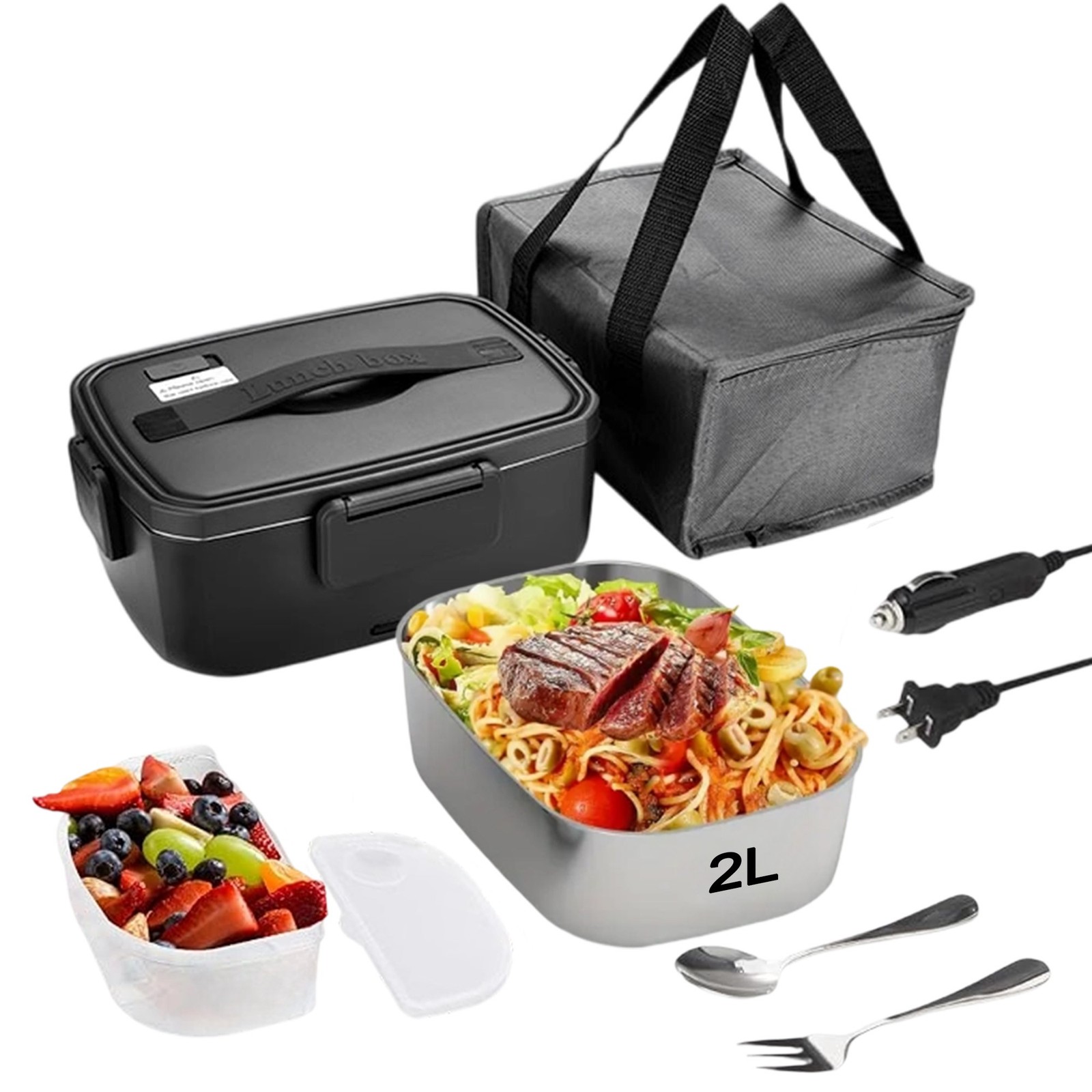 Features: Easy to Carry:Come with a portable insulation bag, portable carry handle for easy lifting or hanging. Free your hands. Heating lunch box , Capacity 2.0L/3.0L. Short Heating Time: Electric lunch box heating for 30-40 minutes, super efficient and energy-saving. No need to use a microwave oven and the self cooking electric lunch box solves the problem of heating cold food. Electric Lunch Box 2 In 1: Just use the 220V, 110V & 12V cable to plug in the lunch box for men electric and heat the food, you can enjoy warm and healthy food. Suitable for students, offices and truck drivers. This electrically heated bento box is your best choice. High Quality Material & Easy To Clean:The car electric lunch box built-in high quality removable 304 stainless steel container. Easy to clean. No Leaks! with a free spoon for you. Perfect Gift Idea: Provides you with premium quality pro lunch box in excellent workmanship, which makes it a wonderful gift idea for family, friends, colleagues or any one you love. Specification: Product Name: Electric Heating Lunch Box Material: Plastic, 304 Stainless Steel Color: Grey/ Green Power: 80W Capacity: 2.0L/3.0L Frequency: 50-60Hz Voltage: 12V, 110V Power Plug: US Plug Heating Time: 25-50 min Dimension: 260*190*113mm Warm Tips: Please do not clean the heating base with water, and do not add water to the heating base. Package Included: 1 x Electric Lunch Box 1 x Stainless Steel Spoon 1 x Stainless Steel Fork 1 x Stainless Steel Container 1 x Power Cord 1 x Power Cord for Car