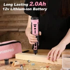 Voltage 12 Volts Power Source Battery Powered Recommended Uses For Product Grinding, Sanding, Cutting Color Pink About this item 12 V Powerful Wireless Rotary Tool: This pink rotary tool delivers significant power despite being cordless. The 2.0 Ah lithium-ion battery powers the 12-volt motor and allows users to sand, grind, and cut quickly without issue. The rotary tool boasts a significant speed range, with five convenient speeds: 7500, 15000, 20000, 25000, and 32000 rpm. This allows you to choose the best speed for the job at hand. Perfect for Kinds of Materials: The cordless rotary Tool kit includes 114 accessories in total with grinding stones, sanding pads, felt wheels, mandrels, and much more. It comes with a tow size (3/32" & 1/8" ) universal chuck, allowing you to change accessories on the rotary tool freely. The number and variety of accessories make this tool perfect for crafters working with a lot of materials. All accessories can easily be stored in a plastic case Compact & lightweight: The entire rotary tool only weighs 1.38 pounds and is just 10 inches in length, is an excellent choice for those who don't want a cumbersome cord attached to their tool. The rotary tool has equipped with a hook, hanging in the air with a rope, saving effort for long hours of work. The tool has very little vibration or sound, so you won't have that buzzed hand feeling either Amazing Gift for DIY Enthusiasts: All rotary kits are packed in a light carrying bag, suitable for sanding, engraving, polishing/cleaning, and drilling. The tool bag is made of high-quality polyester fabric, wear-resistant, scratch-resistant, and tear-resistant. Double-pull zipper design for easy organization and access High-Performance Craft Tool: WORKPRO rotary tools are small handheld devices with rapidly spinning motor tips designed to accept a wide range of bits and attachments. This makes them perfect not only for a wide range of household tasks, including repairs and maintenance but also for crafting and hobbies. There are even rotary tool attachments designed to care for pets’ toenails Attention: Recharging per 3-6 months will prolong the life of the cordless rotary tool if it is not used often Voltage 12 Volts Power Source Battery Powered Recommended Uses For Product Grinding, Sanding, Cutting Color Pink Special Feature Cordless Included Components 12V Cordless Rotary Tool with Battery and 114 Accessories Item Weight 1.38 Pounds Maximum Rotational Speed 32000 RPM Number of Batteries 1 Lithium Ion batteries required. (included) Style Tool UPC 820909777625 Item Weight 1.38 pounds Package Dimensions 17.52 x 11.42 x 4.37 inches Item model number W123016AE Batteries 1 Lithium Ion batteries required. (included) Special Features Cordless Batteries Included? Yes Batteries Required? Yes Battery Cell Type Lithium Ion