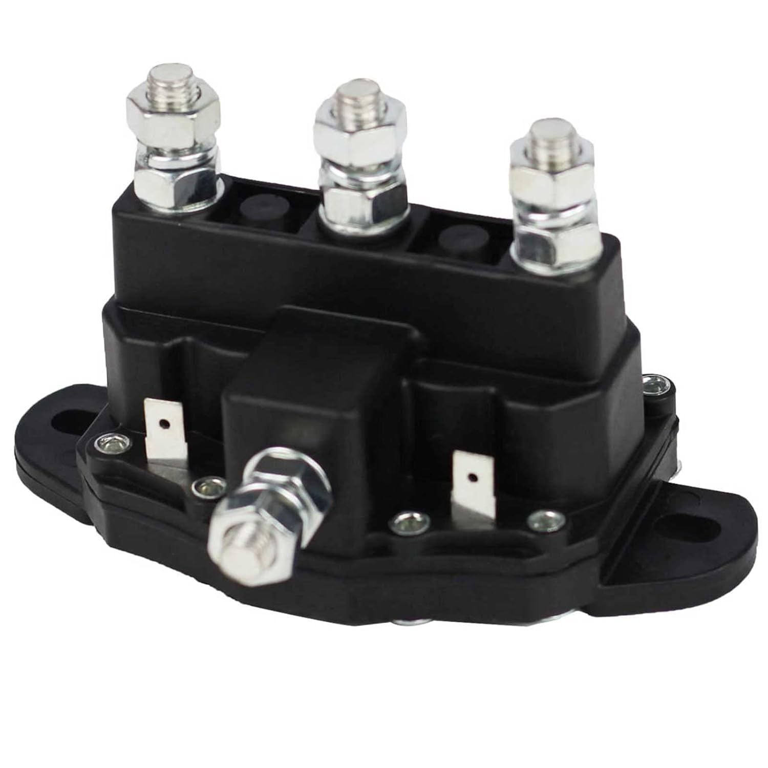 OEM REPLACES NUMBER: Trom-betta: 214-1211A11, 214-1211A11-06, 214-1211A51, 214-1211A61, 214-1231A11, 2141211A11, 2141211A11-06, 2141211A51, 2141211A61, 2141231A11; Cole Hersee 24450, 24450BX PARAMETER: Voltage: 24VDC, Surge Working Current: 150 Amp, Contact Studs: 5/16"-24 Threaded Studs for Battery & Motor, Number of Terminals: 6, Surge Amps: 150 A, 75 Amps for 5 Minute, DPDT Motor Reversing APPLICATION: This solenoid switch is used to reverse polarity on permanent magnet winch motors with 2 terminal posts. NOTE: Will not work with older style motors with copper wound fields. TIP: Allow 5 minutes cool down time after pushing solenoid to the maximum limit. Product Description SPECIFICATION Voltage: 12V Terminals: 6 High Current Stud: 5/16 inch Low Current Stud: 1/4 inch spade Mounting Type: Hose Clamp Mount bracket Duty Cycle: Intermittent Contacts Material: Copper Housing Material: Nylon TA6 Potted coil Material: Copper Resistance: 2.9Ω Work Current: 100A Inrush Current: 120A