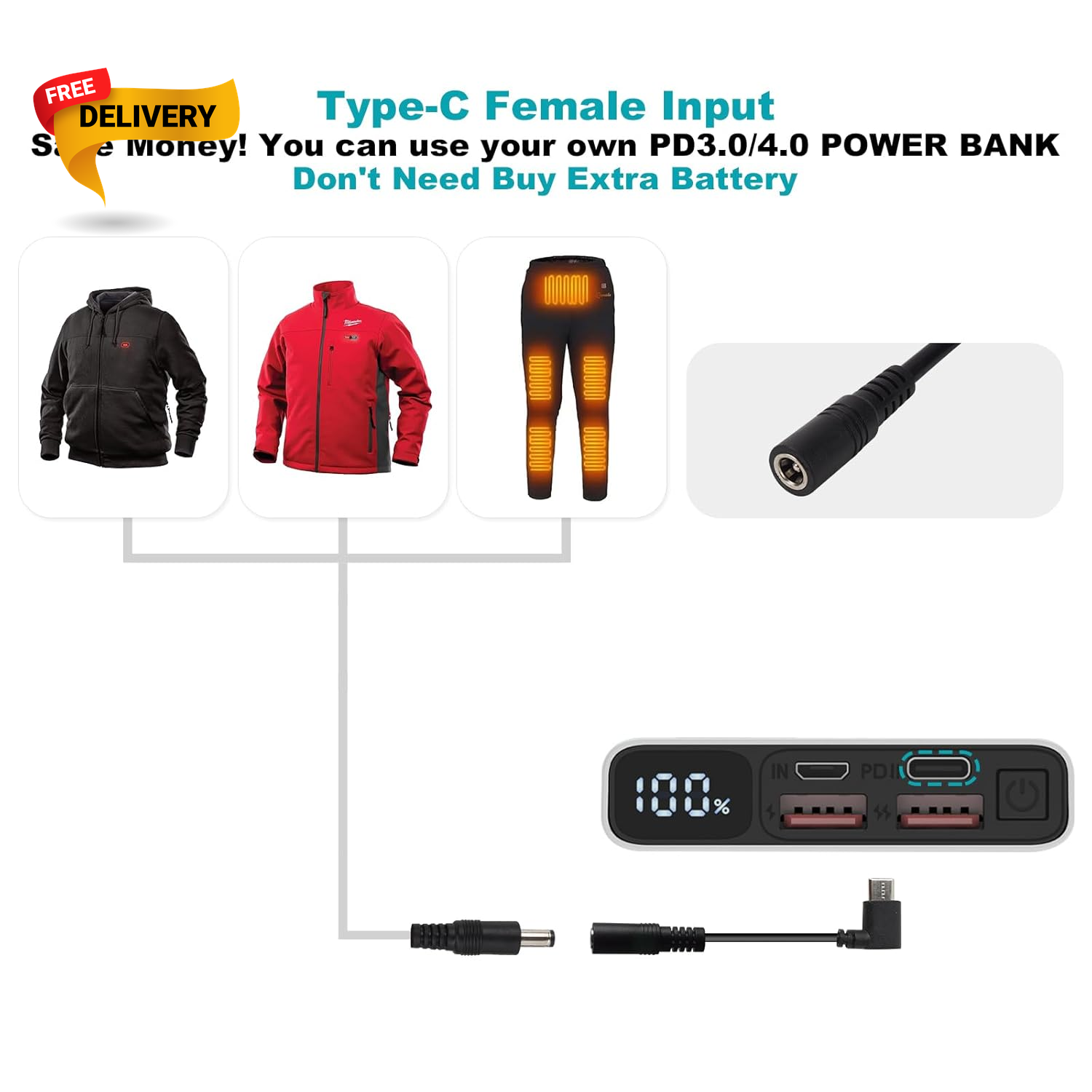 Fast Shipping On All Items 30 Days Money Guarantee Customer Support Excellent Service 100% Satisfaction Satisfaction Guaranteed 12V Heated Jacket Battery Step Up Adapter Charger Cable Compatible with Mil.... Specification Cable Type USB Country of Origin China Connector Type USB Type C Special Feature Low Voltage Package Dimensions 6.73 x 4.21 x 0.31 inches; 0.32 ounces 4.21 inches x 6.73 inches x 0.31 inches. Weight: 0.32 oz Item Description Attention Before Purchase: Type C Heated Jacket Charger Cable can Excited Power Bank TypeC outlet from 5V to 12V from your QC 3.0 Power Bank or PD function Power Bank. The heated jacket adapter cable only work with QC 3.0 Power Bank or PD function Power Bank. NOT work for old version power bank which USB outlet is 1.0A, 2.0A, 2.1A, 3A. Why Choose this Heated Jacket Step-up Magic Adapter Cable? This 12V Heated Jacket Step-up Adapter Cable can connnect with your own QC 3.0 Power Bank or PD function Power Bank. This Can save your money. This Magic Cable can be as Replacement Heated Jacket Battery Pack Solutions for milwaukee heated Jacket battery, milwaukee m12 extended battery, Snap-on heated jacket battery, Revean jacket battery, 12v tool batteries and 12V heat jacket battery. Q001. Why your Jacket cannot work with this Cable? A001, The function of this Type C Heated Jacket Charger Cable is that it can Excited your Power Bank TypeC outlet from 5V to 12V from your QC 3.0 Power Bank or PD function Power Bank. The heated jacket adapter cable only work with QC 3.0 Power Bank or PD function Power Bank. NOT work for old version power bank which USB outlet is 1.0A, 2.0A, 2.1A, 3A. (Most of the time, Your jacket won't work because your power bank doesn't have Real QC3.0 or PD Q002. Why your Jacket cannot work with this Cable? A002, This Cable connector size is 5.5mm. If your jacket connector size is 3.5mm or 4.0mm and cannot plug your heated jacket connector with this cable.( Most of 7.4v/8.4v heated jacket connector is 3.5mm or 4.0mm and most of time cannot work with this 12V stepup cable.) About us We offer the best prices around on high quality products. Our E-store includes media such as books, movies, music and games while offering electronics, toys, sporting apparel, clothing, tools, general home, garden items and more. Shipping We are always working hard to ensure your package arrives as soon as possible. Please understand that some factors like weather, high postal traffic, and the performance of shipping companies are outside of our control. We offer free shipping to the lower 48 states and ship within 2-3 business days of payment, usually sooner. We do not accept P.O. Boxes. Please provide a physical address. For shipping outside of the continental USA, we only use eBay's Global Shipping Program.The item is shipped to KY and then sent to the rest of the world. International customers are responsible for all duties and taxes. Continue to check out to calculate costs for shipping the item to your country. Messages regarding eBay's Global Shipping Program MUST be directed at eBay EXCLUSIVELY. Returns We offer a 30-Day Return Policy on items in which you are not completely satisfied with. You have the option of a full-refund or an exchange of the item. No returns are available on items shipped outside of the USA Satisfaction We try over very best to make sure every customer is completely satisfied. If there's a problem, message us! We're happy to help. Payment Options Shop With Confidence
