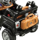 12V Kids Ride on Truck, Off-Road Electric Car with MP3 Connection, Working Horn, Steering Wheel, and Remote Control, Black 2 Modes in 1: Our toddler electric car is perfect for kids ages 3-6 s old and can be operated in two ways: Ride inside of the vehicle and operate with the foot pedal, or control it with the included remote control. Features Galore: This kids motorized vehicles is equipped with movable wing mirrors, openable doors, working horn and headlights, dashboard lights, a high/low speed switch, forward and reverse gears, a useable trunk, and an LCD power indicator so you can monitor the battery. MP3 Connectivity Built-In: There is nothing better than cruising in your electric kids car with some tunes around the neghborhood. That's why we have included an MP3 port for playing music on external devices, to allow your child to roll around in style. Powerful 12V Twin Motor: This awesome toddler electric toy car features a mighty 12V twin motor that provides powerful rear wheel drive to the vehicle for great performance on rougher surfaces. Comfortable Design: The roomy seat of this powerwheel car provides a large space for your child to sit on comfortably, and comes with a seat belt for added protection (always monitor your child while they are riding).