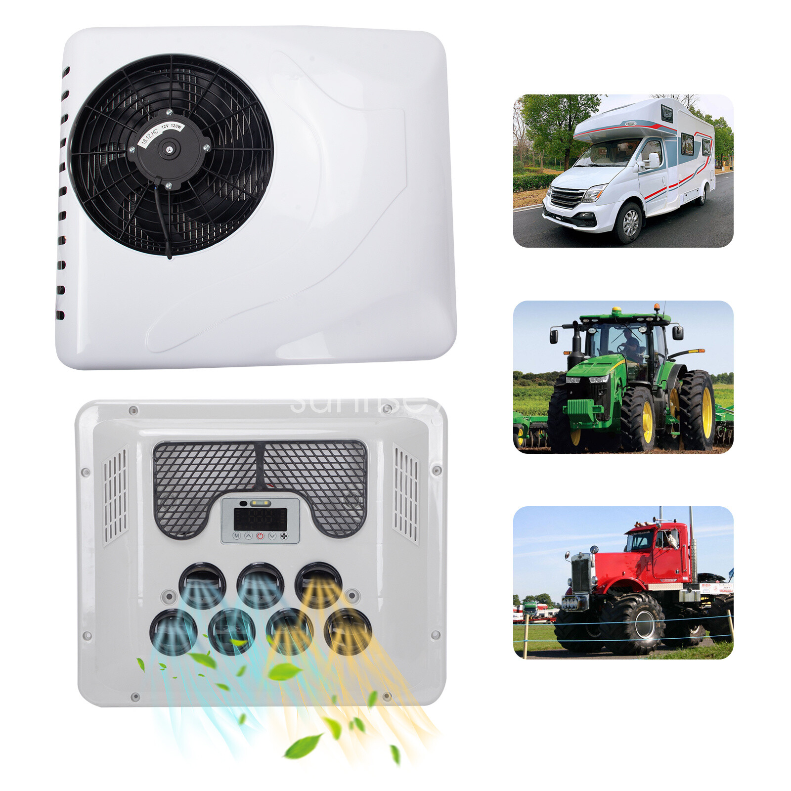 Item specification: Voltage:12V Cooling Air volume:about 2300 W ; Heat Air Volume:1000W; Power Consumption:960W; Rated Current:30-70A; Host Size: 67 x 74 x 16 cm / 26.4 x 29 x 6.3 inch Refrigerant: R134A Note: The Roof Opening size need to be larger than 225*299mm(8.86*11.77inch) and smaller than 440*580mm(17.32*22.83inch) Please check this before you order! Applicable: New energy electric air conditioning is suitable for truck , caravan , cranespassenger , excavator , motor home , RV , agricultural machine , etc Package: 1x A/C Heating & Cooling Set If you have any problem towards the order you received,please feel free to contct us,we promise will serve you and give you a satisfying solution.