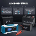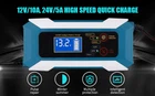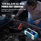 Microprocessor Control (CPU). 3-STAGE AUTOMATIC CHARGING: This is a fully automatic battery charger with 3 charge stages. Automatic charging protects your battery from being overcharged. So you can leave the charger connected to the battery indefinitely. 3-stage chargers are suitable for most battery types including Calcium, Gel and AGM, Wet batteries. They may also help restore drained and sulphated batteries. Specification: Types of batteries: Most types of lead acid batteries including Calcium, GEL and AGM, Wet,EFB, etc.. Switchmode technology: Yes Polarity protection: Yes Output short protection: Yes Non battery link protection: Yes Over voltage protection: Yes Over temperature protection: Yes Cooling: Fan Type: Smart & Automatic AC Input: 100-240V 50-60Hz Output Voltage: 12V/24V Auto Output Current: 12V 8A & 24V 4A Output Volt No Load: 13.8V Minimum Start Volt: >2.0V Input Power With Load: Max.130W Input Power No Load: 3.2W Operating temperature range: -20 ~ 45℃ Storage temperature range: -30 ~ 70℃ Operating humidity range: 90%RH Max Efficiency: More than 85%. Compliant standards: CB,CE, IEC60335, EN61000, EN55014 Dimension (L×W×H): 18.5×8.5×5.3cm Length of Cable: 187cm (73.68in) Package Included: 1x Car Charger with Input Cable and Clamp Cable 1x User Manual with 7 Languages Note: 1.This Charger is for battery capacity between 6AH to 150AH. Please check the capacity (AH) of your battery before buying the charger! Thanks! 2.Please don't charge for lithium Ion battery
