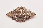This 12k gold fill Victorian brooch pin features filled Main Stone Treatment and an Antique design. It is a Unisex Adults accessory made of Yellow Gold Filled metal with a vintage look suitable for the Victorian era. Weight: 11.42 grams, length: 1.2 inches, width: 1.9 inches, tested gold fill.