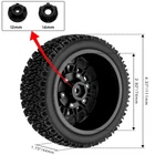 Specifications: Product Name: RC Truck Tires Color: Black Tire Material: rubber Outer Diameter: 4.37"(111mm) inner diameter: 2.92"(74mm) Width: 1.73" (44mm) Hex Size: 12mm/14mm/17mm Quantity: 4 Pcs/Set Tire Weight: 132g/1pcs Package List: 4 * RC Wheels and Tires 4 * 12mm Hex 4 * 14mm Hex 4 * 17mm Hex 【Compatibility】This 1/10 scale RC wheels and tires, it designed for almost all 1/10 scale RC trucks with 12mm hex 14mm hex, like a suit for Traxxas Slash Arrma Senton Axial Losi Redcat Rc4wd HSP Tamiya HPI Kyosho, 1/10 universal RC truck tires. 【Detachable hex】This is a detachable and replaceable hex adapter tire, equipped with 12/14/17mm hexagonal adapters, which can be replaced at any time to break through the limit, Please make sure our 1/10 RC wheels and tires are the correct sizes you are looking for, to avoid returning products and save your time due to the not compatible size, set comes with 12mm and 14mm Hex and can be disassembled and replaced. 【 High-Quality Rubber Material】This is a 14mm/12mm hex RC tire and wheels made of high-quality rubber and plastic materials, more durable, sturdy, practical, and environmentally friendly. It is not easy to wear and has a long service life. 【Multi-leveled Step Design】Multi-leveled step pin design for Incredible traction and durability, due to the unique design surface texture, it has more grip, it will be suitable for pavement, dry grass, hard-packed dirt, loose surfaces, etc. 【Tips】Note: The important notice, Before use, please glue and fix the wheel hub and tire skin to avoid separation of the wheel hub and tire when driving at high speed!