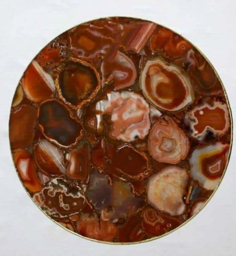 Welcome To Stone-Craft- Creations Shop Description Very unique Art by Indian Artist ,Coffee/Side Table top Used Material: Natural Stones Arts Size: 12"x 12" Inches Color: As Photo Shape: Round Pattern: Handmade Room: Bedroom, Dining Room, Hallway, Home Office/Study, Kid’s Bedroom, Kitchen, Laundry/Utility Room, Living Room,Patio, Playroom Packaging: Wood & Foam Export Packing Shipping: Air Can Be customize ,Please Message us your desired Size 1. It can be used as a Dining Table, Guest table, coffee table, center table top in show room as well as a gift for your loved ones. 2. The table top is made in Agra India & fully handmade. 3. The top will be delivered by FedEx or DHL free of cost door to door. 4. If there is any local tax,custom duties or Vat will be paid by the buyer at the destination. 5. The parcel is dispatch with proper packing & fully insured covering all kind of risk. 6. To maintain the table top is simple soap & water & dry cotton cloth. 7. If You Are Looking Something Customize, Let Us Know We Will Make For You As Per Your Design, Size & Shape. 8.Table top does not includes any wooden, marble stand or base if you like to buy marble or wooden base or stand that will be charged extra. Marble Agate Table Tops We are Manufacturer & Exporter of marble agate table tops. These marble agate table tops have different shapes like Round Table top, Octagonal Table Tops, Rectangle / Dining table tops, Square Table tops, Chess Table tops, Taj Mahal Table tops, Custom Designs Table tops also make marble Table top Base and Stand. Then we can be used as dining tables, coffee tables, Center tables, conference tables, chess boards, reading tables, bar tables , Garden table, side and corner tables or any other use as per the indoor and outdoor decor. They can also be placed outdoors in the garden, as marble is stain free, offers great resistance to the forces of nature, and can withstand heavy temperatures. We also meet customized requirement and offer our marble table tops at industry leading prices. About Agate Stone- Agate is a rock consisting primarily of cryptocrystalline silica, chiefly chalcedony, alternating with microgranular quartz. It is characterized by its fineness of grain and variety of color. Although agates may be found in various kinds of host rock, they are classically associated with volcanic rocks and can be common in certain metamorphic rocks. Ancient use of agate stone Agate is one of the most common materials used in the art of hardstone carving, and has been recovered at a number of ancient sites, indicating its widespread use in the ancient world; for example, archaeological recovery at the Knossos site on Crete illustrates its role in Bronze Age Minoan culture Types Of Agate 1. Fortification Agate This is the most common and distinctive type of agate. In these agates, bands crystallized into concentric layers that more or less follow the shape of the cavity. The banding resembles an aerial view of a fort 2. Water-Line Agate (also called water-level or onyx) During its formation, silica-rich solution either entered the cavity slowly laying one band at a time, excess water drained out leaving a small amount of silica to settle out into separate bands, or the vesicle filled under low pressure. In any case, the silica crystallization in water-level agates is controlled by gravity in one orientation, forming a stack up of parallel bands. 3. Shadow Agate Some agates exhibit a shadow effect in which there is what appears to be movement across the agate layers when the specimen is rocked back and forth (or your orientation to the specimen moves). This optical effect only occurs when there are alternating translucent and opaque bands. It is caused when light goes into the agate, but is not reflected out. 4. Tube Agate Tube Agate During the formation of some agates, parallel projections of tiny hair-thin mineral rods grow first within the silica gel, around which later the chalcedony agate micro-crystals form. In some cases the inclusions remain, but sometimes they weather away leaving hollow tubes that subsequently fill in with silica. 5. Eye Agates This mysterious agate characteristic is believed to be formed when most of the silica gel drains from the cavity, leaving only a droplet that “beads up” on the inside wall of the cavity. This droplet crystallizes into solid chalcedony “eyes”. In some cases, crystal growth will continue from this droplet in a manner similar to the formation of stalactites in caves. Later, the pocket fills in with the usual deposition of chalcedony microcrystals. 6. Plume Agate These agates initially had formations on their outside layer that formed prior to the deposition of chalcedony bands. They are filament growths of mineral inclusions that resemble ferns or feathers. 7. Geode Agate Geode Agate In some cases the supply of silica-rich water runs out before the entire cavity fills in. When there is a hollow center within a crystalline outer fill, the specimen is considered a geode. Not all geodes have agate banding, but many do. Also, the inner layers can form into several different types of silica mineral crystals and may even have other types of mineral crystals. 8. Moss Agate Moss Agate Moss agates have clusters of mineral inclusions that resemble plants, trees, or landscapes. Most moss agate inclusions are comprised of iron or manganese oxide. In some cases, the inclusions inhibit chalcedony banding allowing the mineral clusters free reign to grow within the silica gel. 9. Seam Agate Seam agates for in cracks within host rock, rather than in rounder pockets. The bands form in parallel rows that follow and fill in the crack or seam.