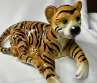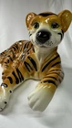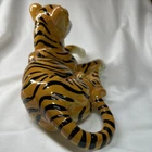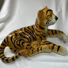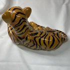 This 13-inch ceramic figurine of a lying down tiger is a beautiful addition to any collection. Crafted with intricate details, this figurine showcases the elegance and power of this majestic animal. The tiger figurine is made of high-quality ceramic material and has been expertly crafted with utmost attention to detail. The figurine depicts a tiger in a relaxed and peaceful state, with its eyes closed and its body in a comfortable resting position. The figurine has been designed to showcase the beauty and grace of tigers with its lifelike features. This collectible item is perfect for any animal lover and will make a great addition to any collection.