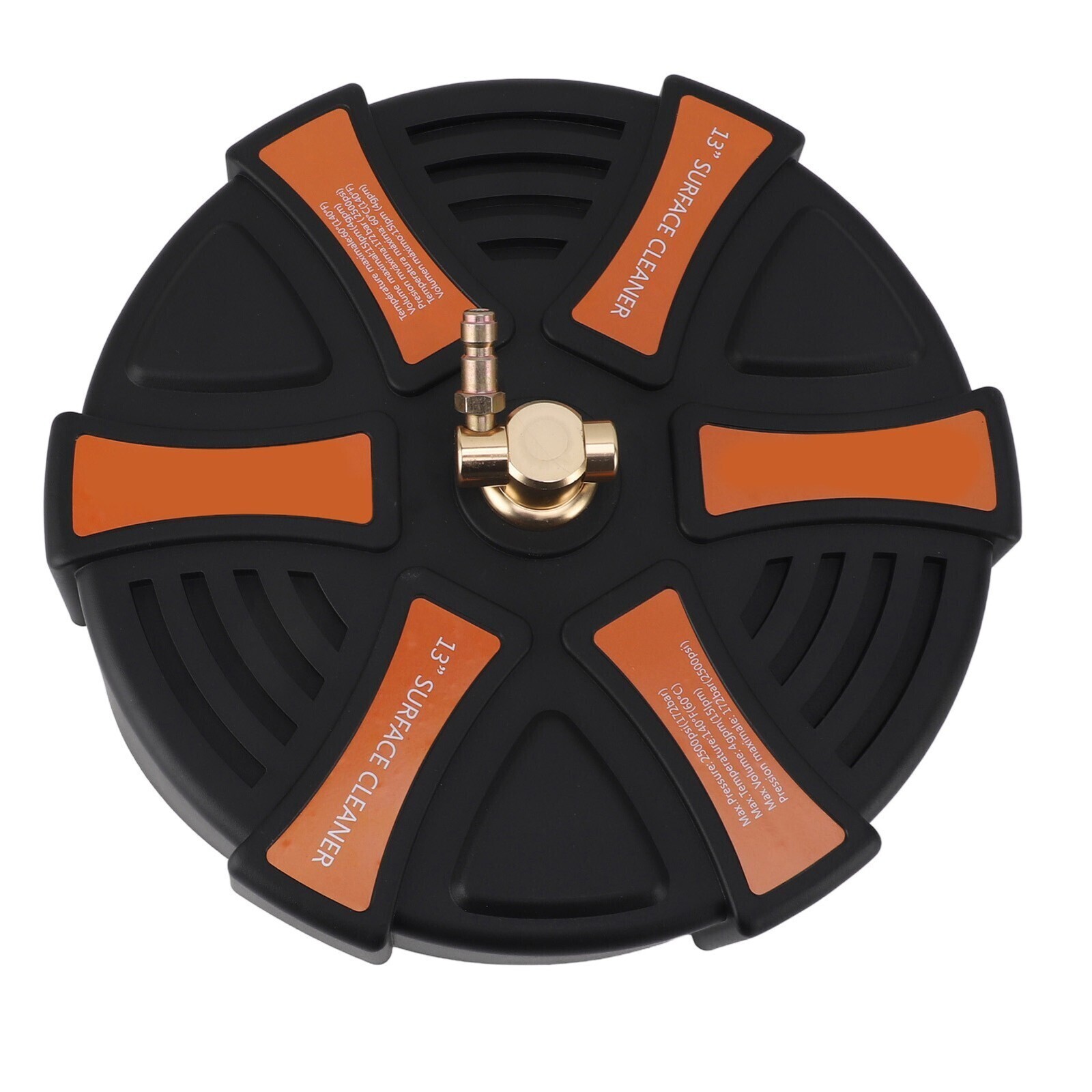 Feature: 1. PROFESSIONAL CLEANING: cleaner gives a commercial grade cleaning area 13 inch wide. Ideal for cleaning stubborn stains on large flat s such as driveways, patios, decks and sidewalks. 2. 2 EXTENSION WAND: The extra extensions are a nice addition to find the right ergonomic position, so you don't have to hunch over, making it easy on your back. 3. HIGH EFFICIENCY: Our cleaner spin rapidly breaking up dust and grime fastly without leaving marks on the . Significantly reduces cleaning time. 4. 1/4 INCH QUICK PLUG: 1/4 inch quick plug is easy to connect with included pressure washer wands. Experience the convenience of pressure washer cleaner for easy cleaning at home. 5. CONSTRUCTION: Crafted from heavy duty copper, stainless steel, and plastic materials, this pressure washer cleaner is built to last. Specification: Item Type: 13 Inch Pressure Washer Cleaner Material: Copper, Stainless Steel, Plastics Weight: Approx. 1370.00g / 48.33oz Product Diameter: 33cm / 13in Maximum Pressure: 2500PSI Maximum Temperature: 60°C Maximum Rate: 4GPM (15LPM) Single Extension Wand Length: 33.5cm / 13.2in Package List: 1 x 13 Inch Pressure Washer Cleaner 2 x Extension Wand 10 x Accessories