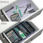 13 PCS Drawer Organizer Tray, Interlocking Office Desk Drawer Storage, Black Plastic Organizer Bins for Office Supplies and Tools, Desk Drawer Organizer for Bathroom and Kitchen About this item Make Everything Organized: These versatile drawer dividers trays are perfect for any place in your office or home. Fit all kinds of drawers, such as vanity, bathroom, kitchen, office drawers, ideal for organizing tools, office supplies, craft supplies, makeup tools, utensils, etc Durable Material: The black desk drawer organizer trays set are made of durable plastic, ensuring a long life of use. Drawer organizer bins are break-resistant and could accommodate different items and match organizational system Stackable and Space Saving: These stackable drawers are designed to save space, which can be used together or separately, so that you can efficiently organize your desk drawers and maximizing space.The drawer organizers can save your time to organize and find your stuff Easy to Clean: Our 13 pcs desk drawer storage is easy to clean by wiping with mild soapy water and a sponge. Convenient to use in your daily life, and make everything look neater and more organized Combination of 13 PCS: One set includes 13pcs storage bins in 2 different sizes, which makes you can customize combinations to store items and organize drawer for your specific needs. Includes: 9.2 x 6.1 x 1.8 inches (5 pack), 9.2 x 2.9 x 1.8 inches (8 pack)