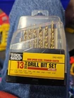 This 13 Piece Drill Bit Set is a high-quality set made by Tool Shop. The titanium-coated bits are durable and perfect for drilling into a variety of materials. The set includes 3 package quantities, with each package containing 13 drill bits. These bits are suitable for commercial and residential use, and can be used with a drill or workbench. The model number for this set is 242-4053, and it is made of steel. The bits are ideal for drilling into drywall compound, and the high-speed steel ensures that they can drill quickly and efficiently. This set is perfect for anyone who needs a reliable and versatile set of drill bits for their home or business.