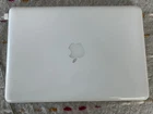 MacBook 6,1 White Unibody 13.3” 2.6GHz Intel core 2 Duo 2GB RAM 256GB SSD. Works great except slower than we're used to nowadays because it's from 2009 and has 2GB of RAM. Does have a service battery warning which you may be able to get rid of if you do a battery cycle thing. There's information about it online. I've never been successful at it because I'm not very patient with that sort of thing. Changed a battery out on my old computer and kept getting that dang warning. See photos. Doesn't have a high cycle count at all and absolutely holds a charge for a very long time. I did a standby test and it ran for a week. You could easily upgrade to an ssd and boost the RAM on this and get something that responds like we're now used to for everyday computer work. Comes with charger which has some marks on it. —— Shipping Due to standalone lithium-based battery shipping restrictions, I can only ship via ground.